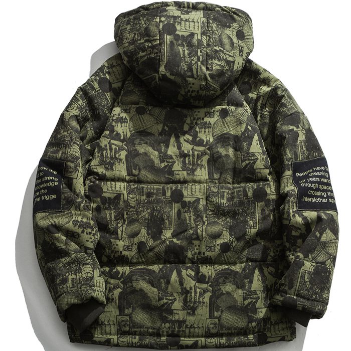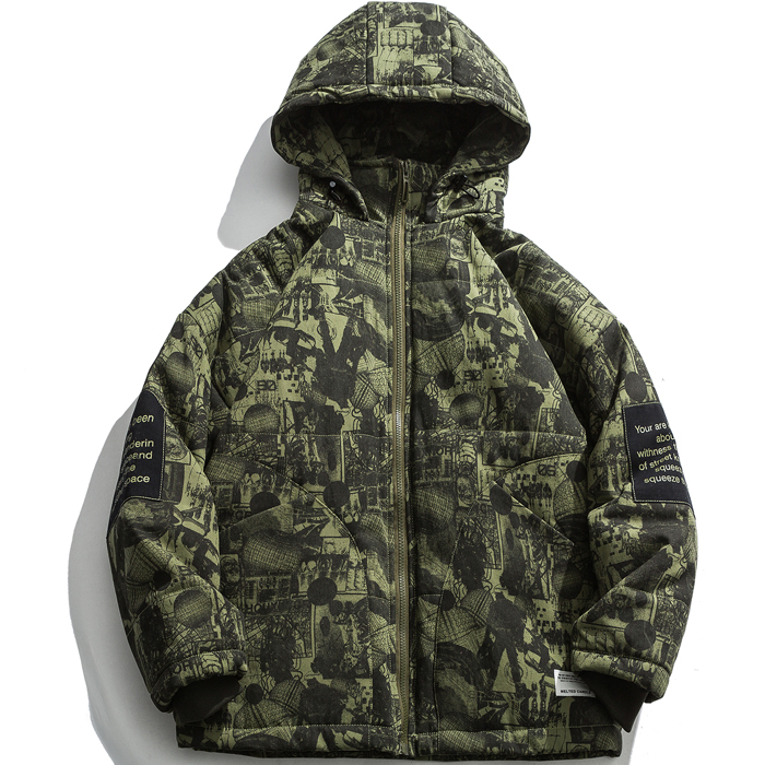 HYPO ZONEY JONES HIGH NECK CITY TOWN FIGURE PRINT CAMO COTTON HOODED JACKET