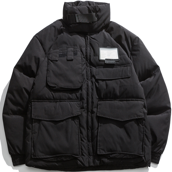 ZOPUZA VELCRO APRIN INVISIBLE POCKET WINDPROOF DOWN JACKET WITH HOODIE