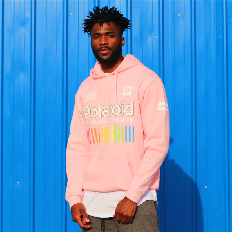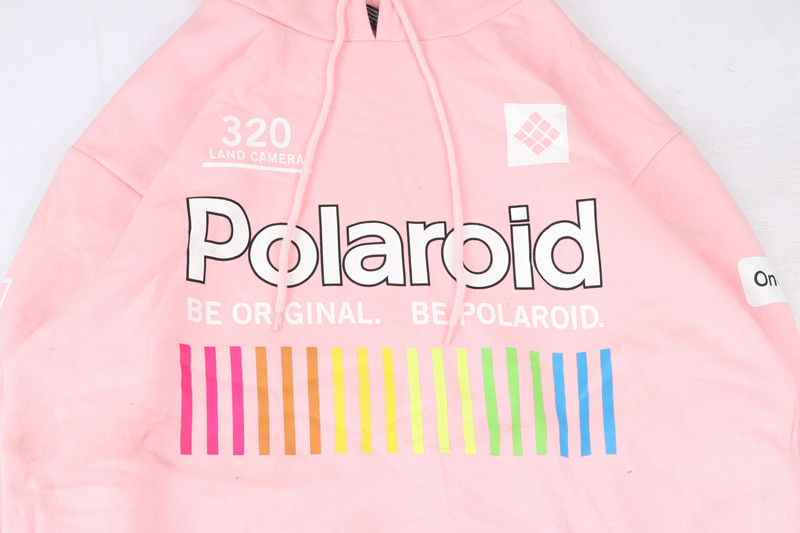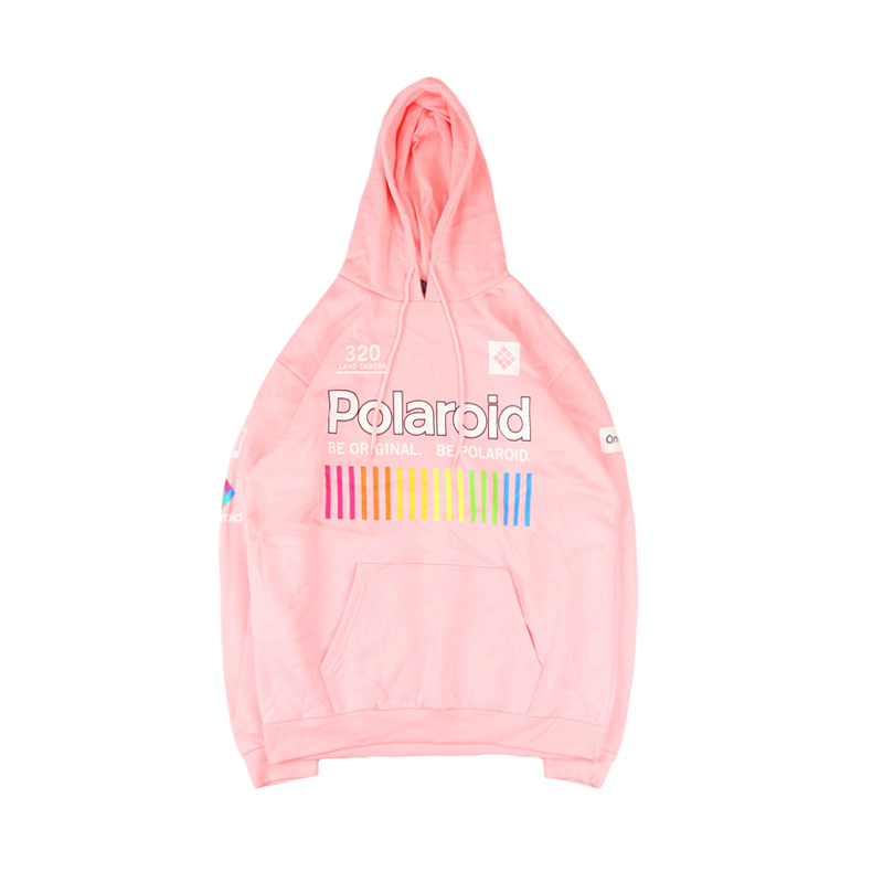 OVERSEAS POLAROIDA LETTER PRINT CASUAL HOODIE SWEATSHIRT IN PINK