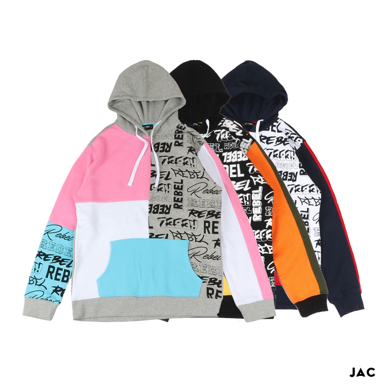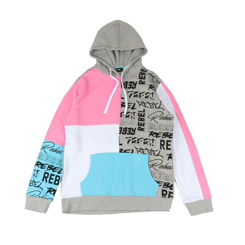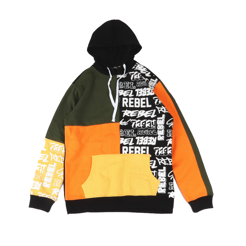 GRAPHIC GRAFFITI ALPHABET DESIGN FLOCKED HOODIE PULLOVER IN MULTI COLOR