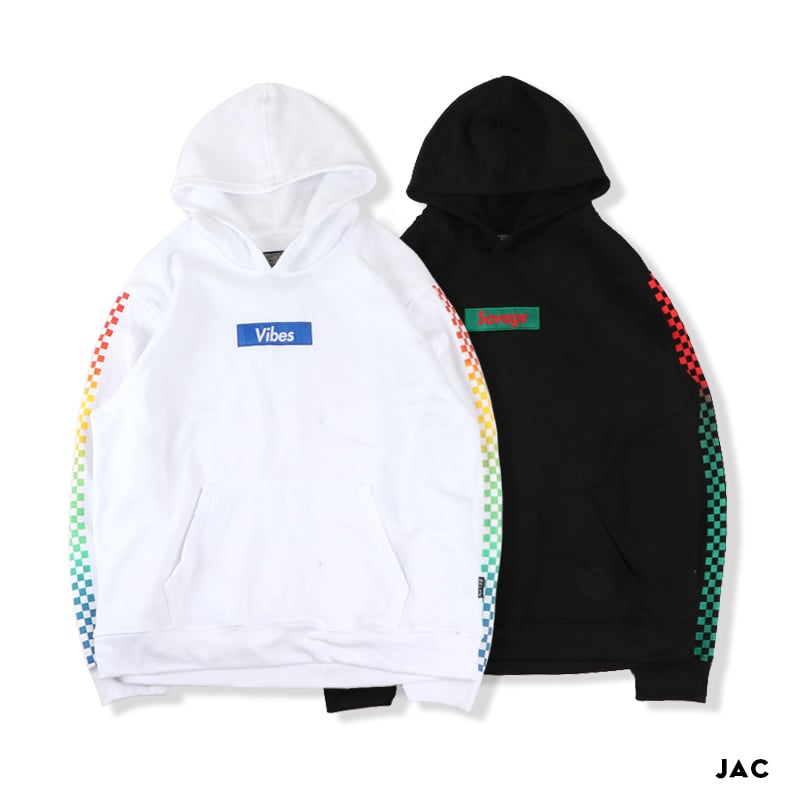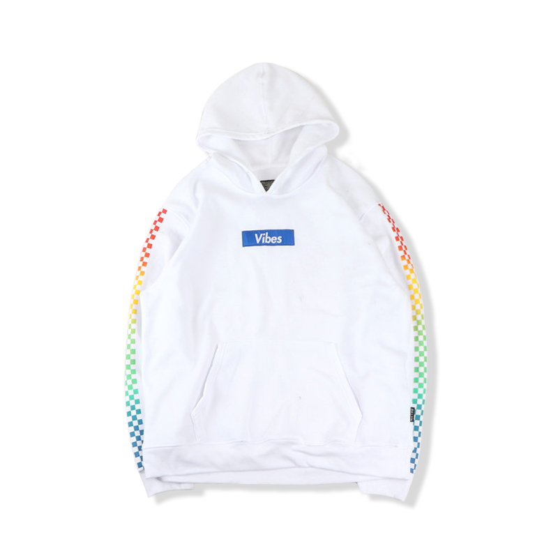 POSITIVE VIBES SAVAGE RAINBOW CHECKER LOGO BOX HOODIE PULLOVER