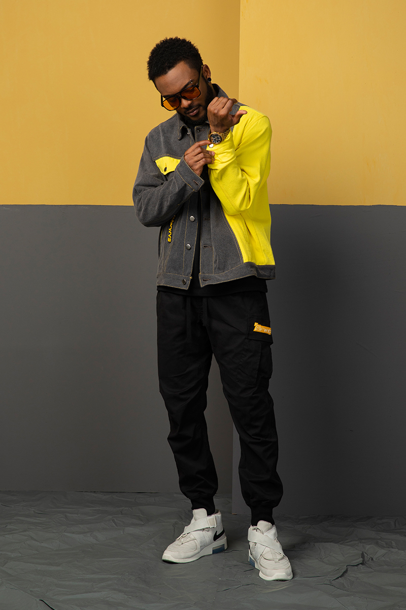 NFWYS METEORITE RIPPED DENIM JEAN JACKET IN YELLOW GRAY