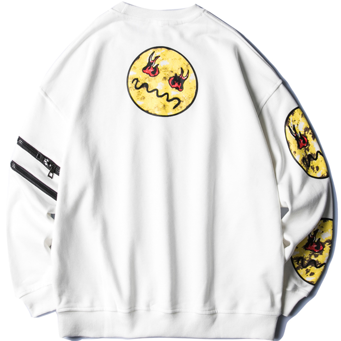 MADDIAOYI ZACPO FLAME EYES FACE PRINT CREW NECK SWEATSHIRT