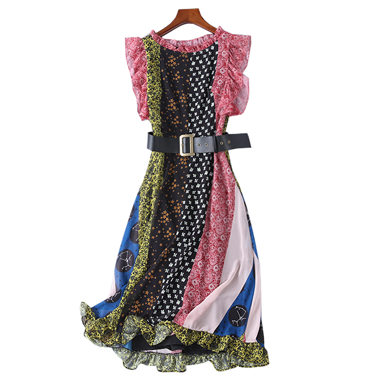 BBL DESIGN SCARF PRINT MIDAXI DRESS WITH FRILL SHOULDER
