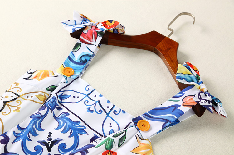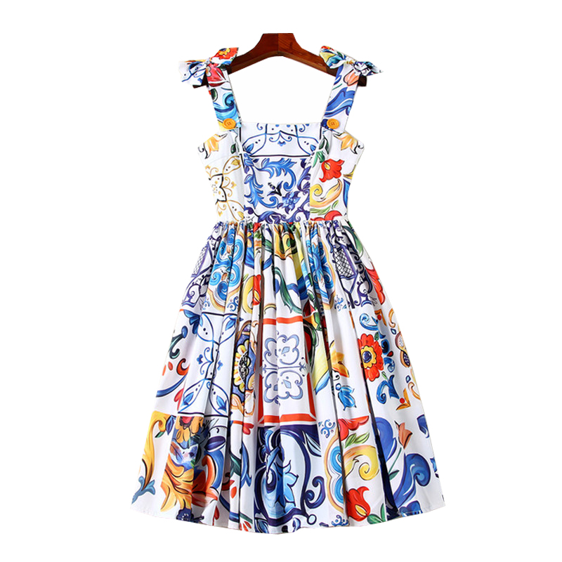 BBL DESIGN MULTI PRINT SQUARE NECK TEA DRESS WITH TIE STRAPS