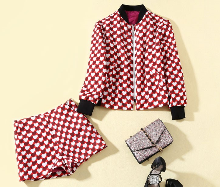 BBL DESIGN CO ORD TRACK JACKET WITH MATCHING SHORTS IN HEART PRINT