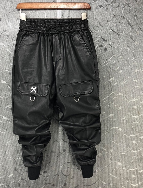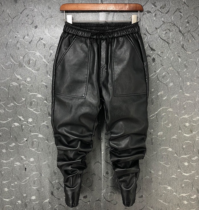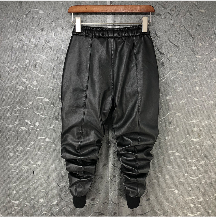 WARNERO ZENK SOCIAL URBAN STYLE FAUX LEATHER SWEATPANTS IN BLACK