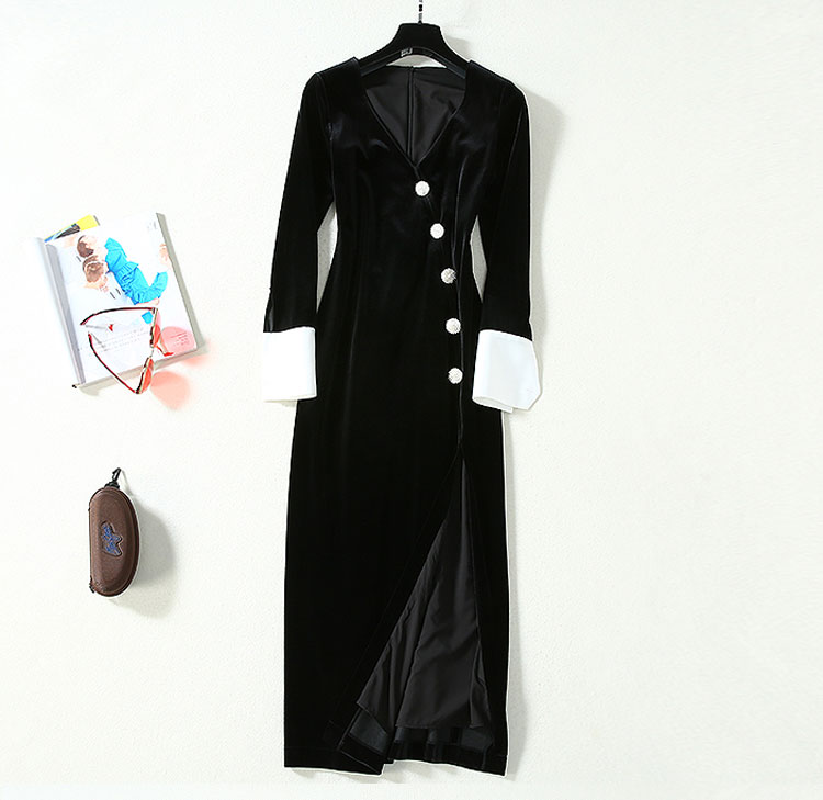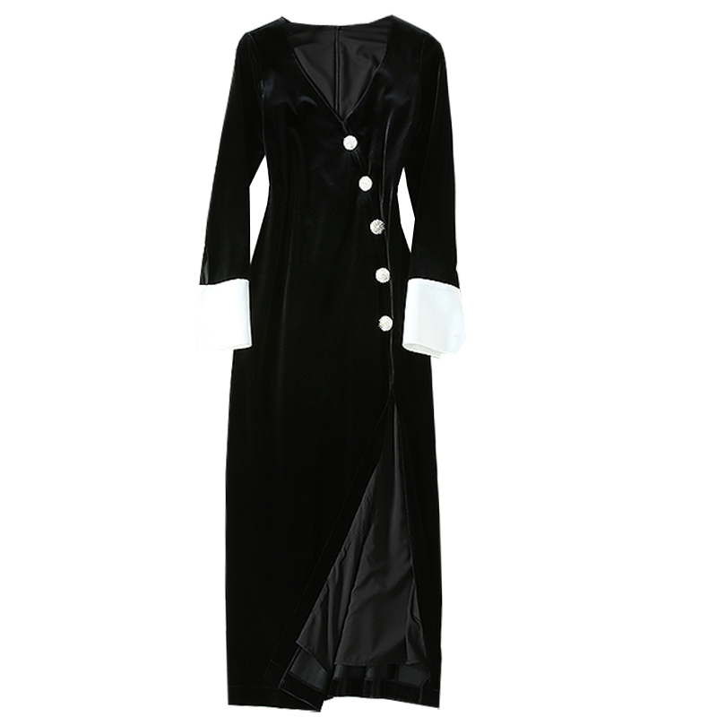 BBL DESIGN LONG SLEEVE VELVET MAXI DRESS WITH CUT OUT FRONT