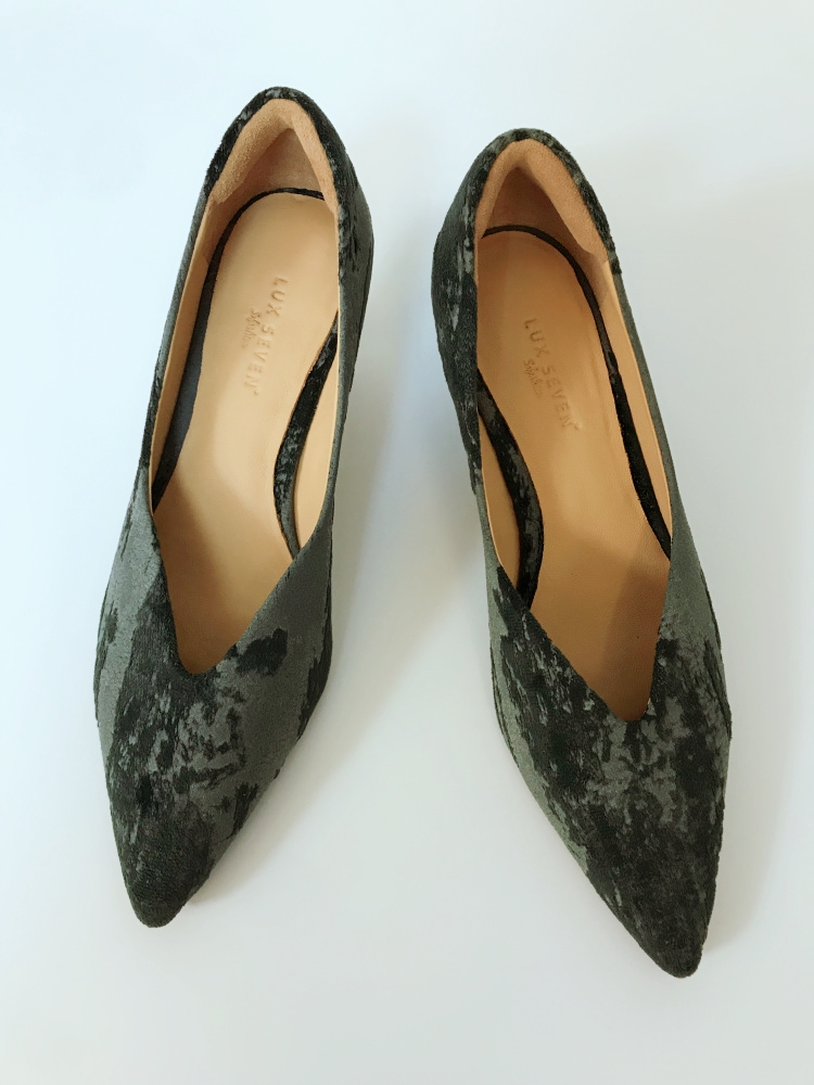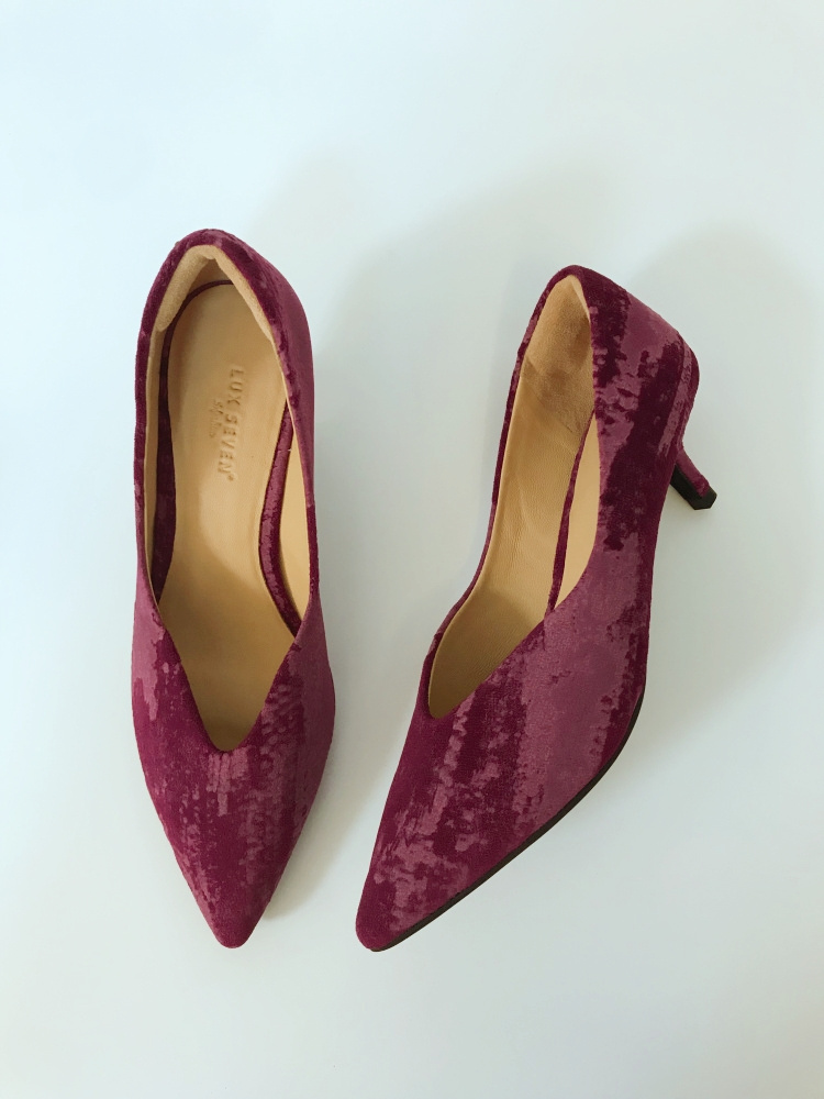 LUXE SEVEN DESIGN KITTEN HEEL COURT SHOES IN RUST VELVET