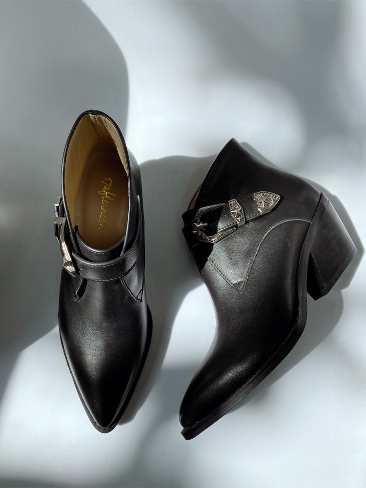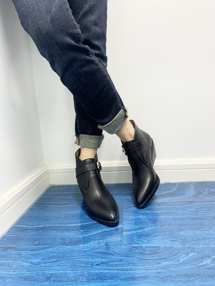 Pull tab Pointed toe Real leather Block heel