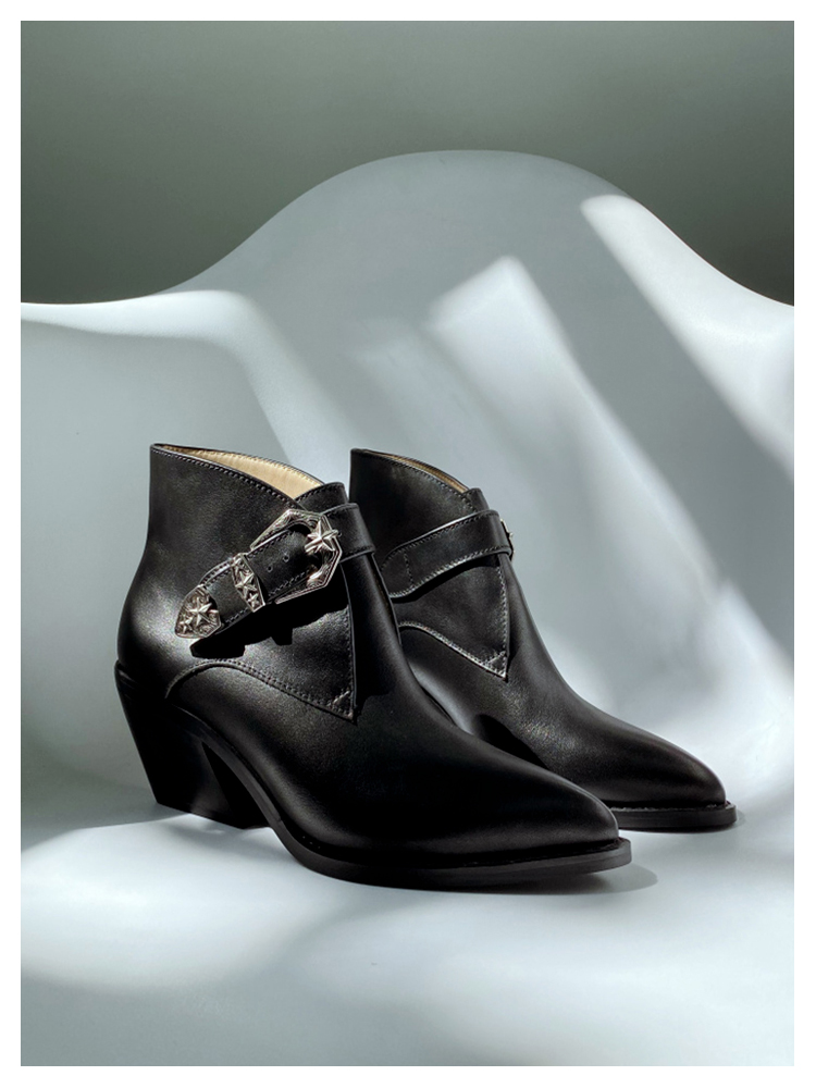 LUXE SEVEN DESIGN BUCKLE DETAIL HEELED CHELSEA BOOTS IN BLACK