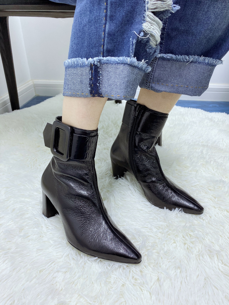 LUXE SEVEN DESIGN BUCKLE HEELED ANKLE BOOTS