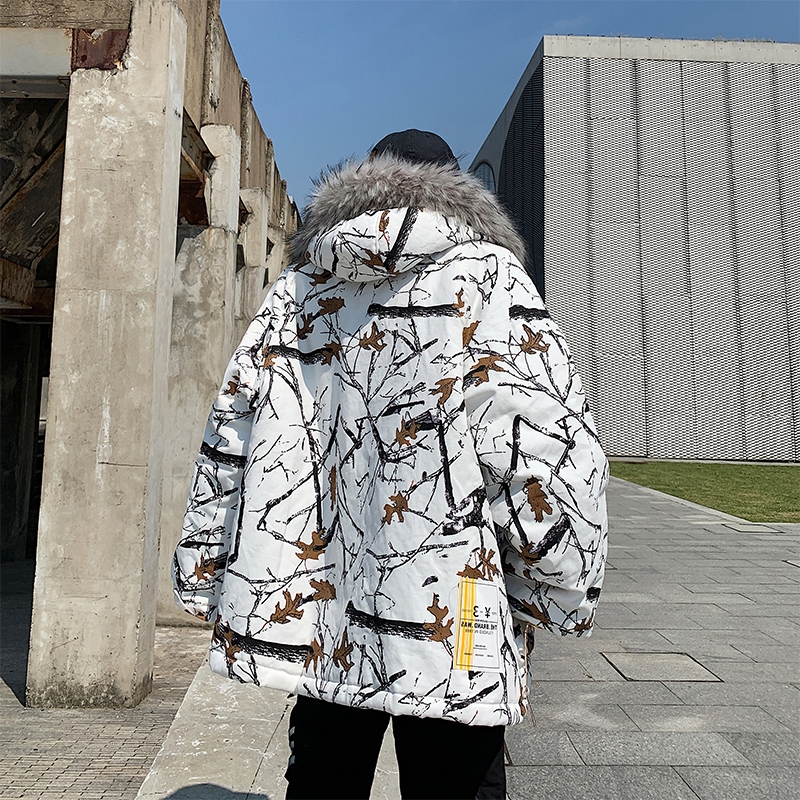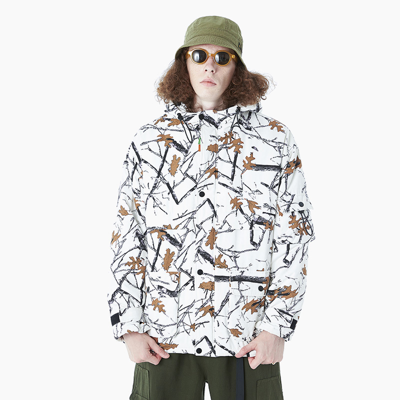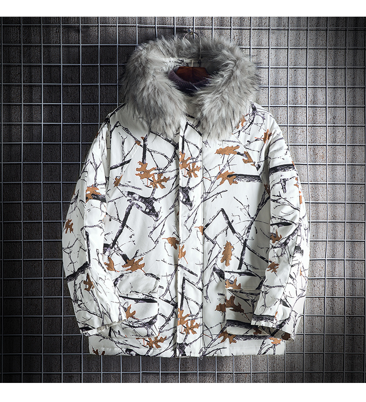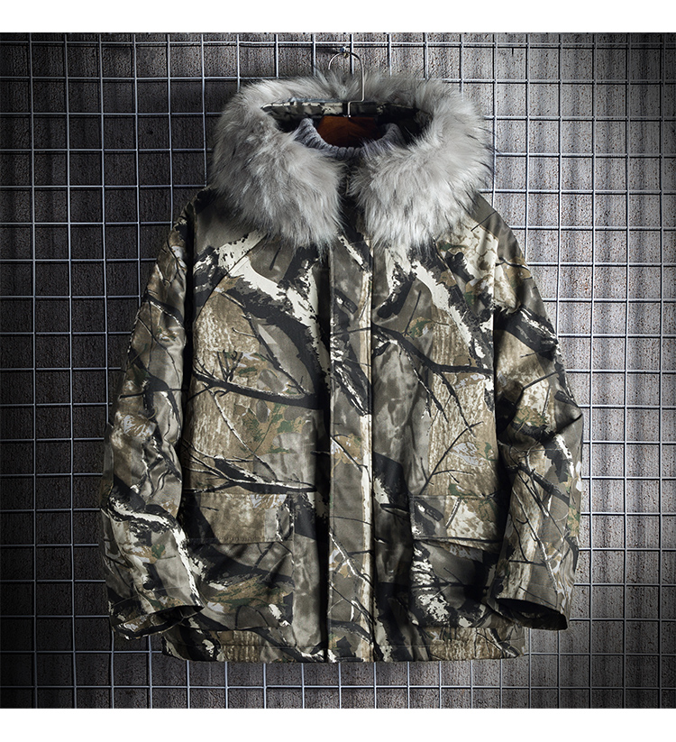 PORIO KYDELA FAUX FUR COLLAR WIND PROOF CAMOUFLAGE JACKET