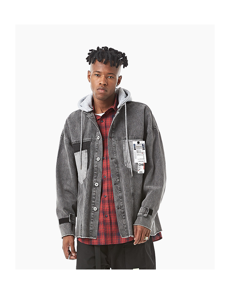 ZEPZU FERGO BEEDOO DETACHABLE HOODED DENIM JEAN JACKET