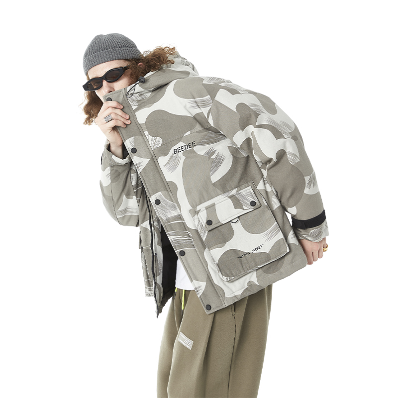 IVORY SWAGGER JARZO CAMOUFLAGE COTTON HOODED UNISEX JACKET
