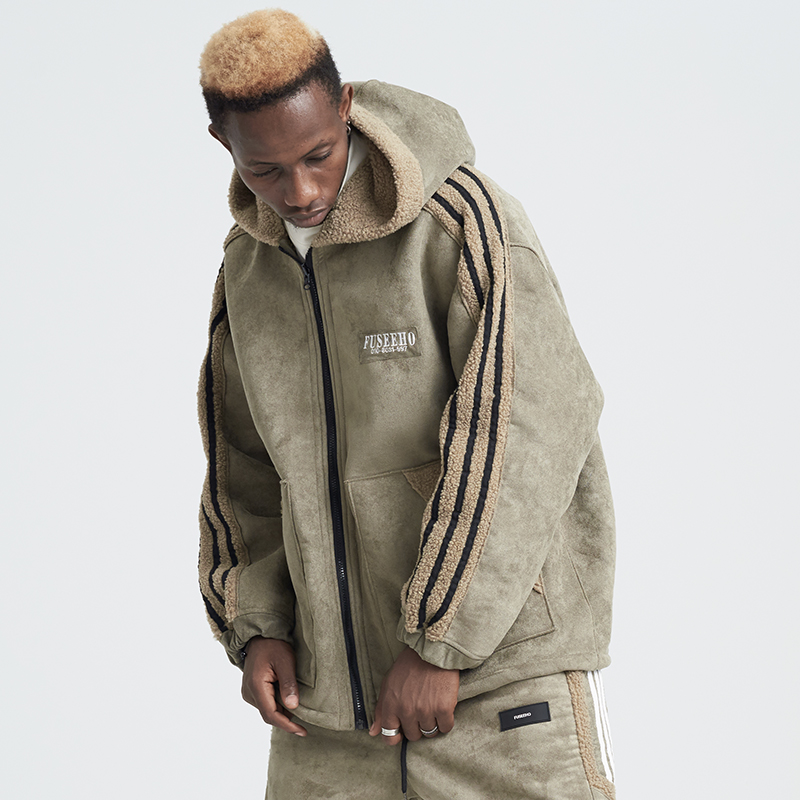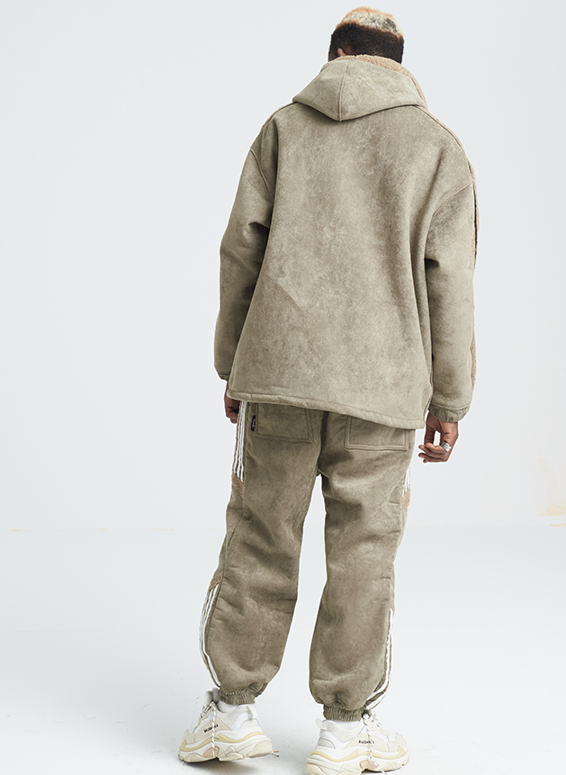 SHOTE SINN HE ON THE EDGE DESIGN HOODED SPORT DOWN JACKET WITH MATCHING PANTS IN KHAKI