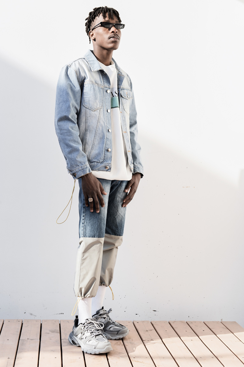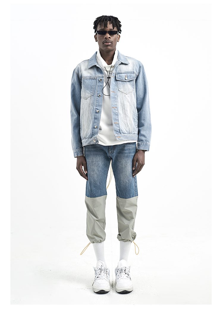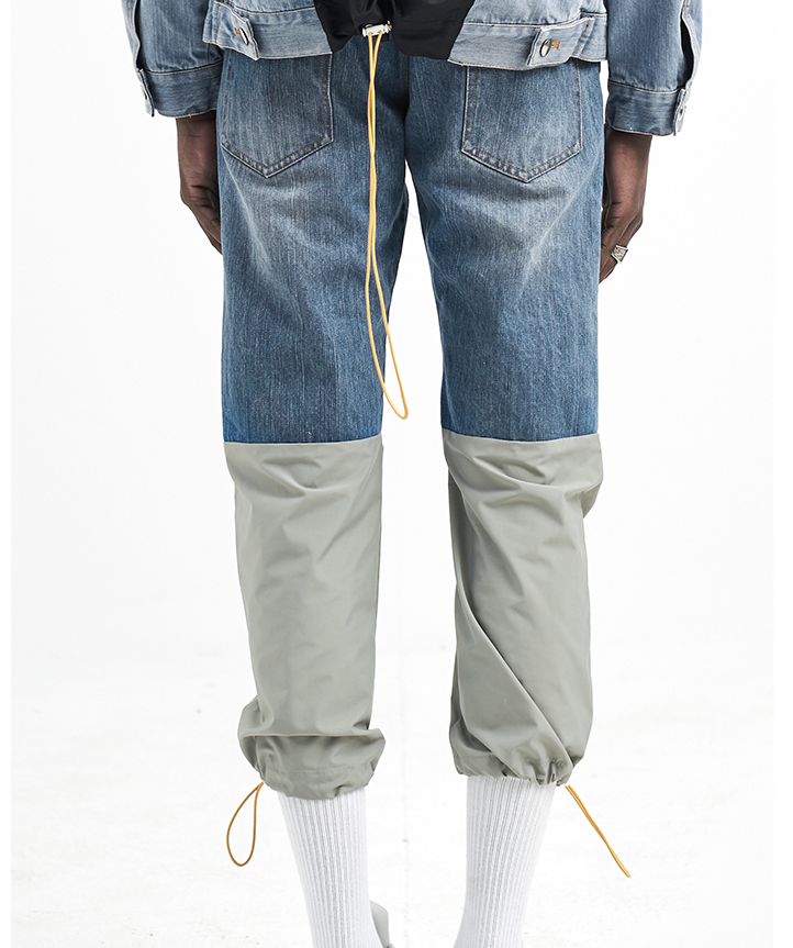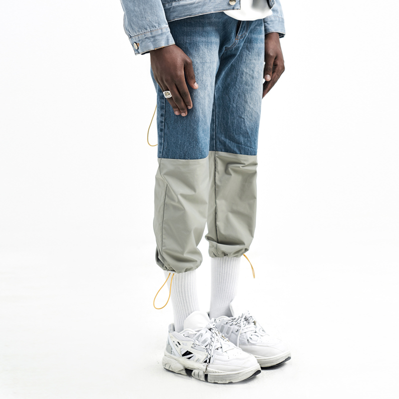 SHOTE SINN HE ON THE EDGE TRENDY DESIGN WASHED DENIM JEAN TRACK PANTS