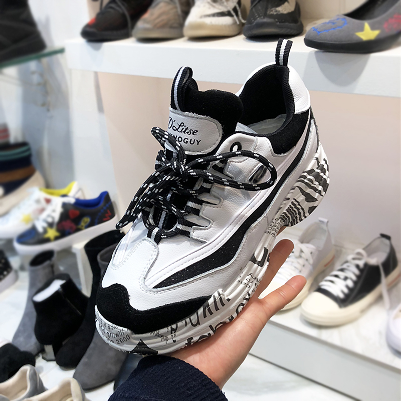 LUXE SEVEN DESIGN CHUNKY TRAINERS IN BLACK AND WHITE