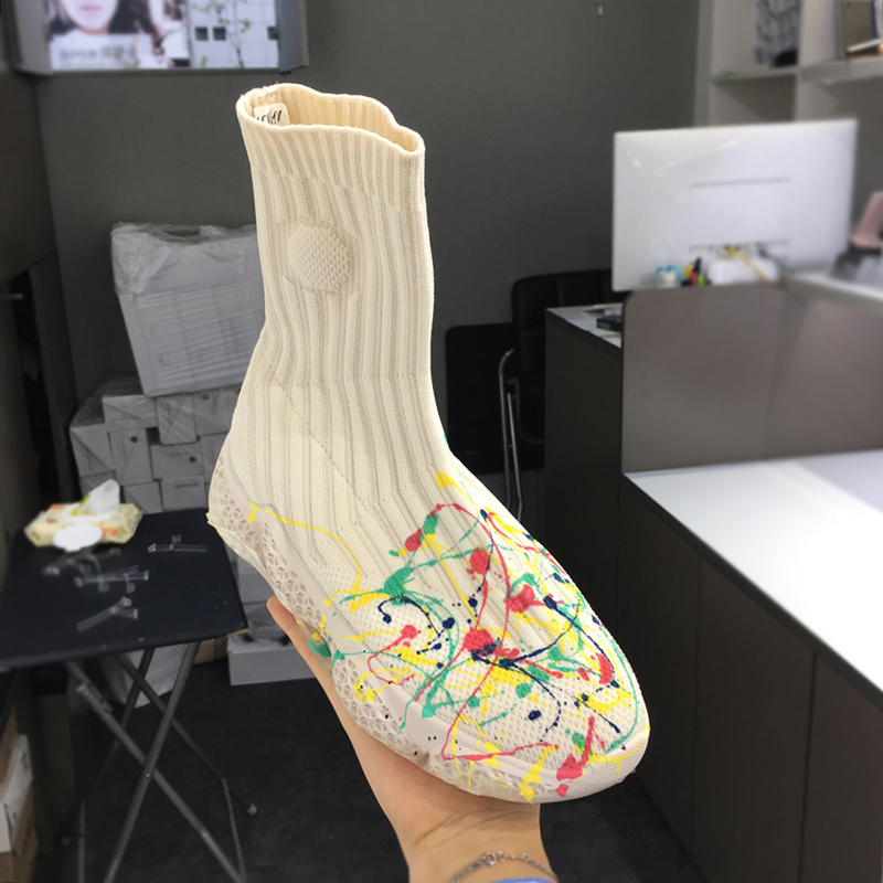 Sock-like construction Slip-on style Chunky sole Knitted detail