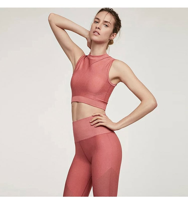JOZO IRON MONSTER FITNESS GIRL MESH KNITTED YOGA LEGGING IN PINK