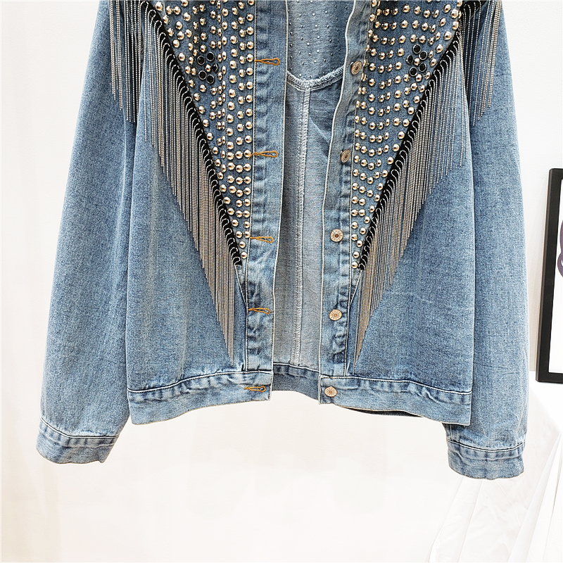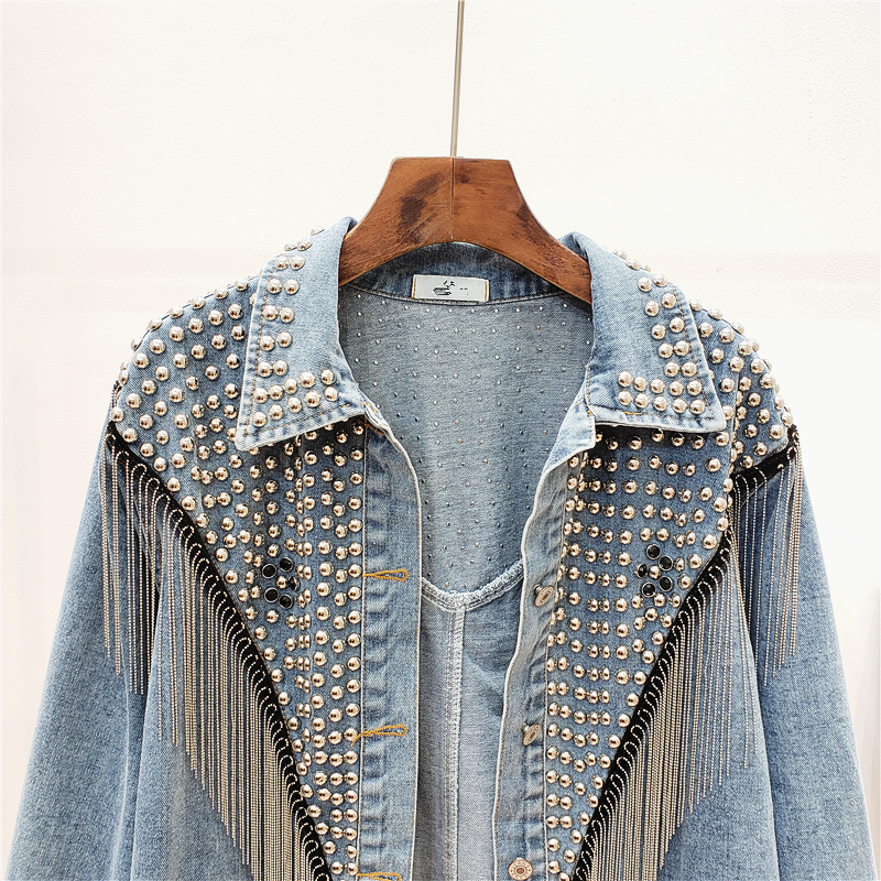 PALLO NOIRA KROZE BEADED TASSEL DENIM JEAN WOMEN JACKET
