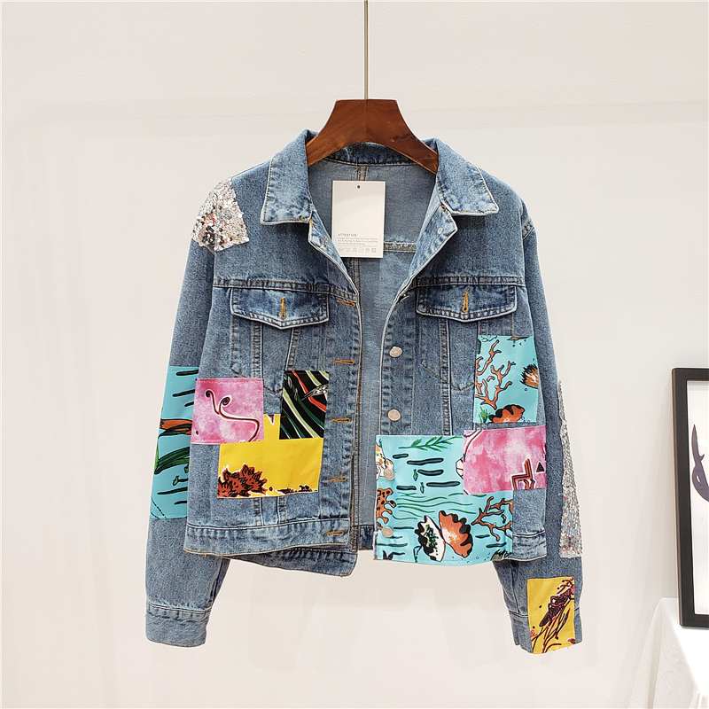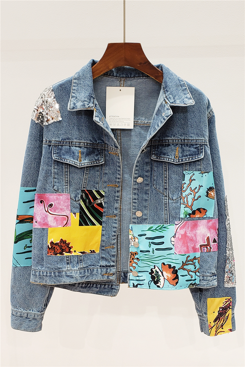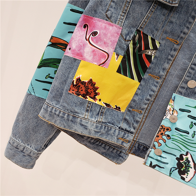 JENWEK PADDY HANDMADE PATCH ARTWORK DESIGN DENIM JEAN WOMEN JACKET