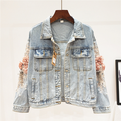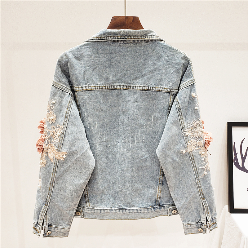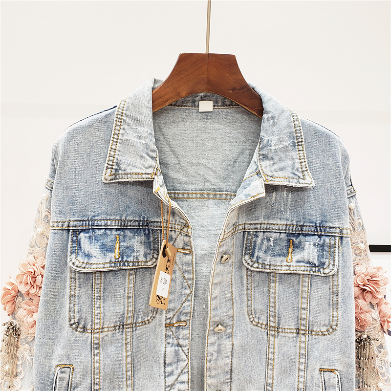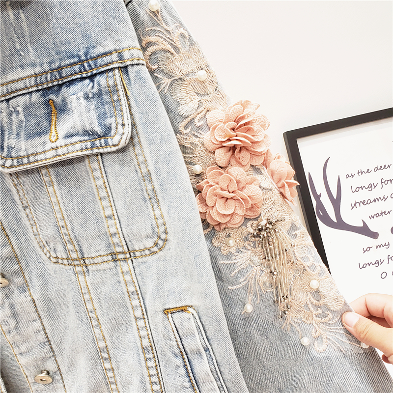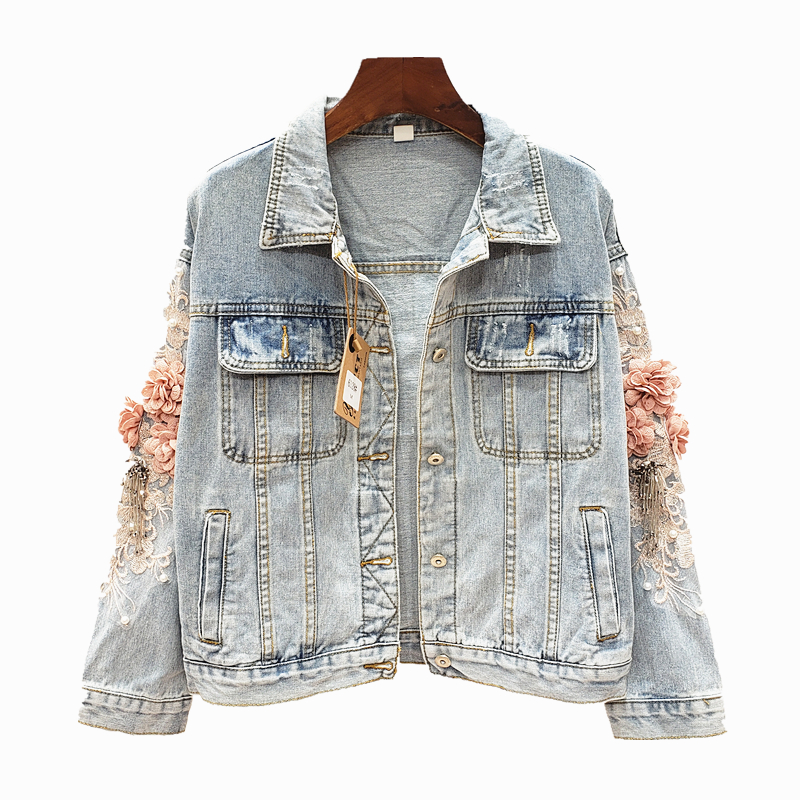 TRISCHA ROCO HANDMADE THREE DIMENSIONAL FLOWER EMBROIDERED DENIM JACKET