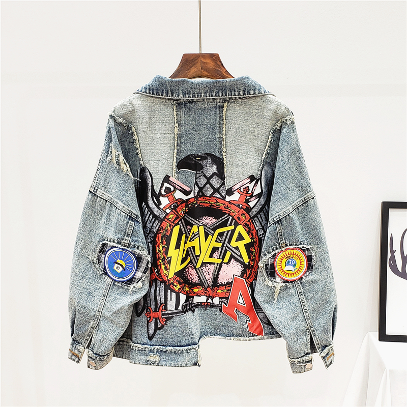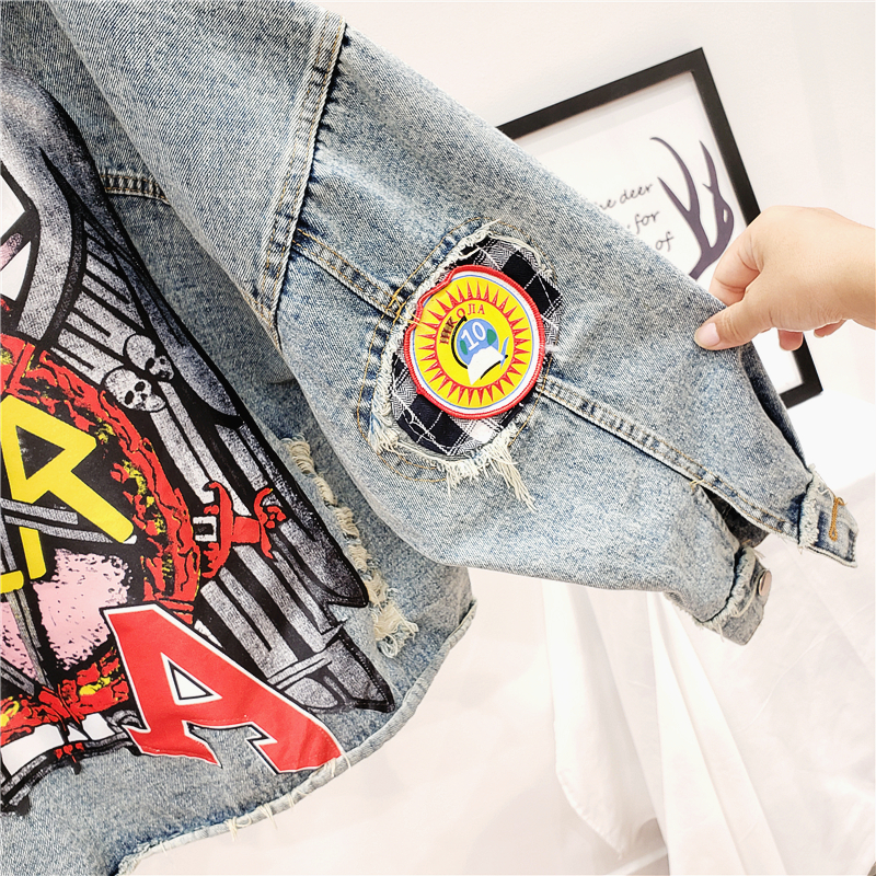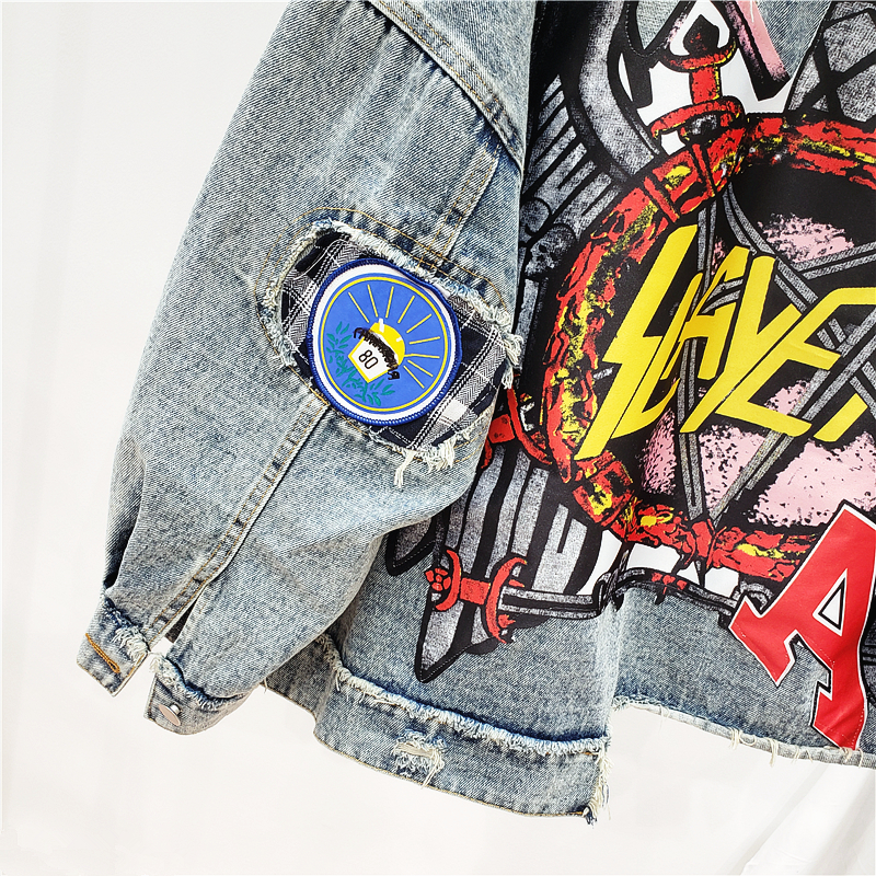 SHULIYA SLAYEZ GRAFFITI PATCHWORK OLD FASHION DENIM JEAN WOMEN JACKET