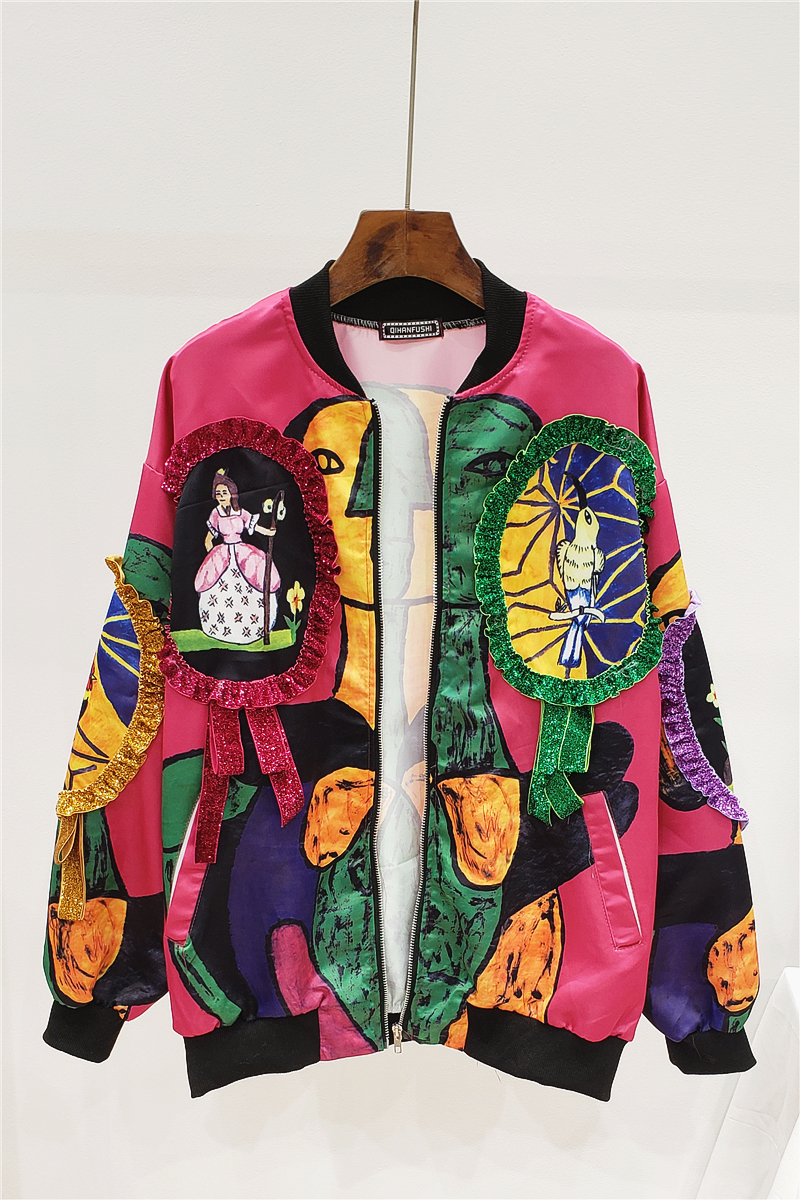 JESSIE CRUZO ARTISTIC ARTWORK RETRO STYLE CASUAL WOMEN JACKET