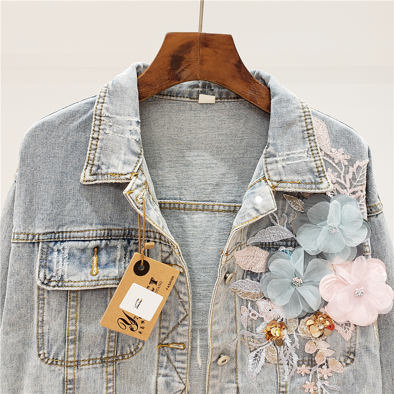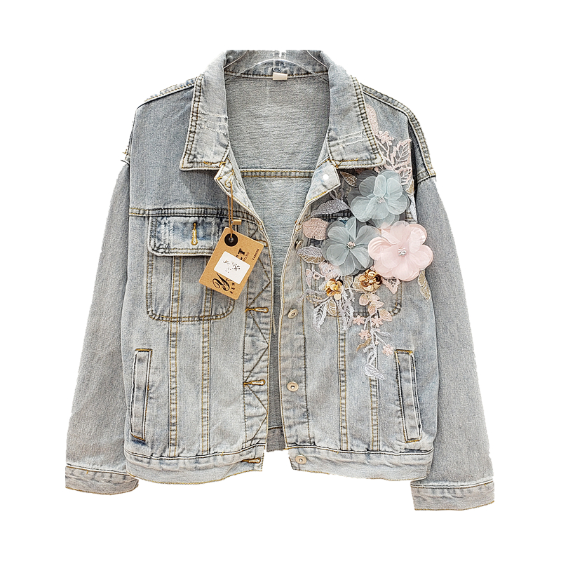 JESSIE CRUZO THE GIANA TRUANCY RIPPED JEAN JACKET WITH VERSATILE FLOWER