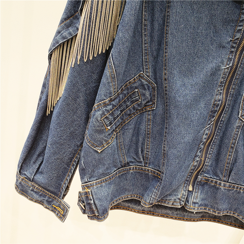 GIANA TRUANCY CHAIN TASSEL PENDANT DENIM JEAN WOMEN JACKET