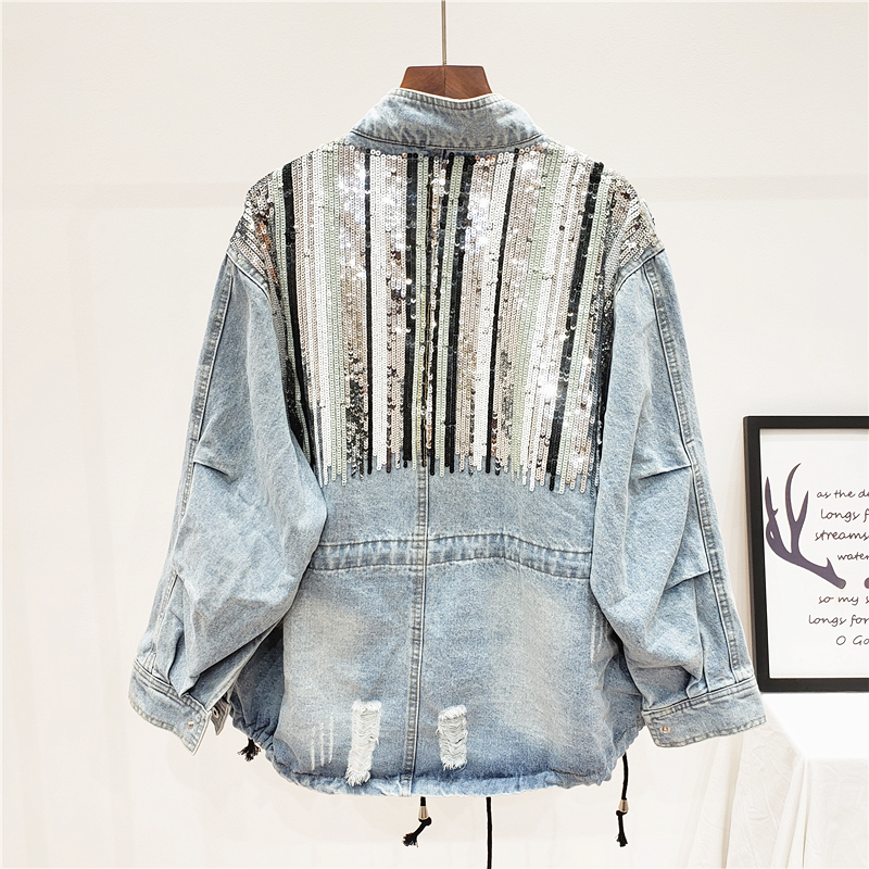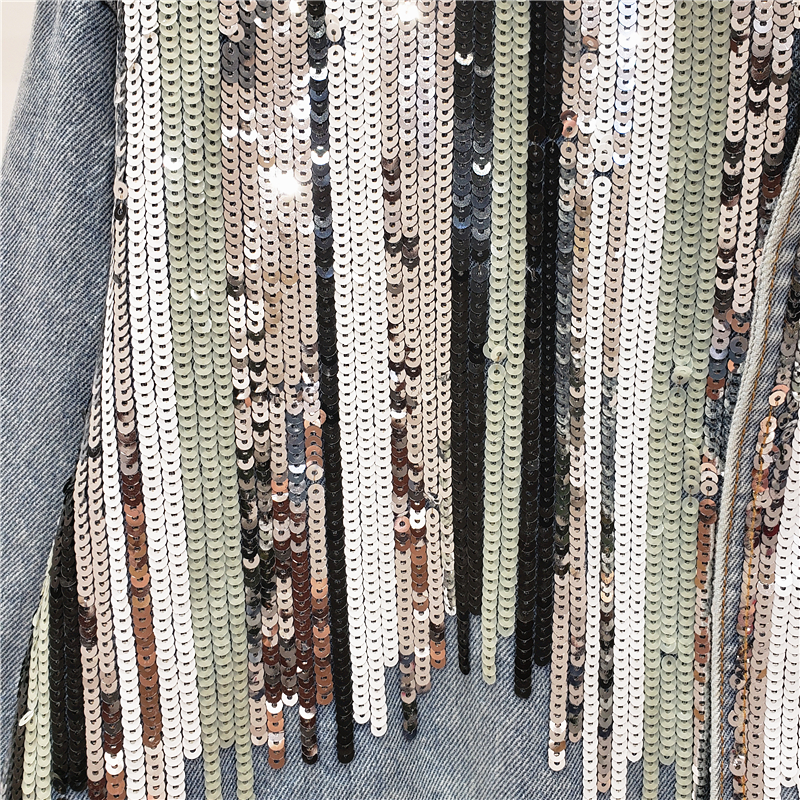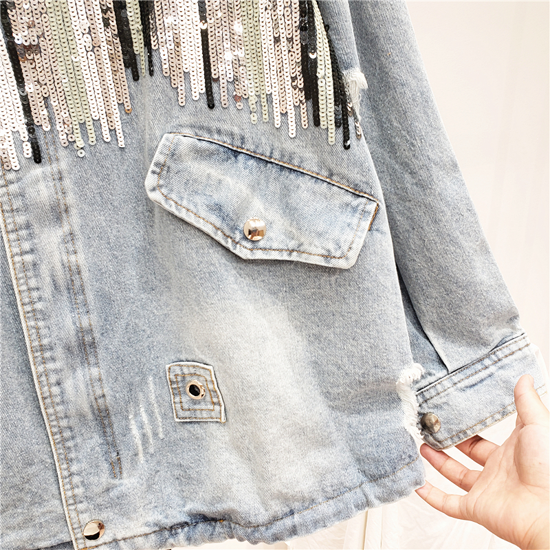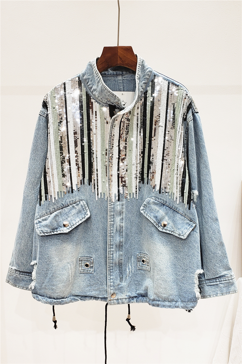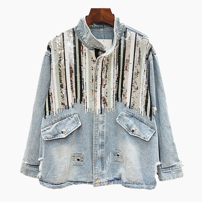 GIANA TRUANCY OLD STYLE DENIM JEAN WOMEN JACKET WITH BEADED SEQUINS
