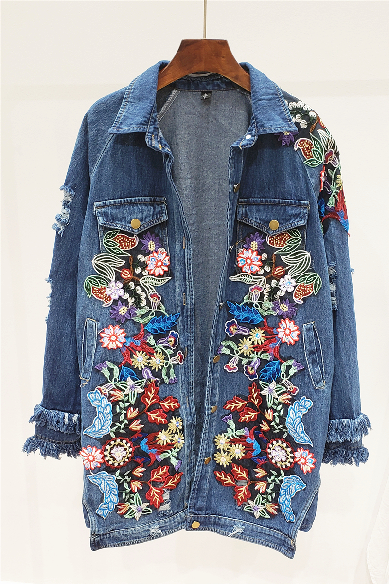 GIANA ZCHMUNKE HANDMADE FLOWER STITCHED OLD DENIM FASHION WOMEN JACKET