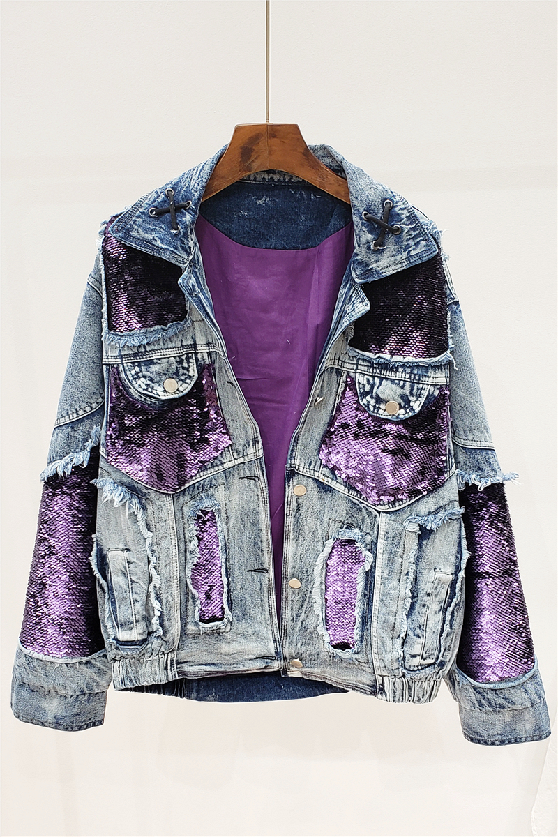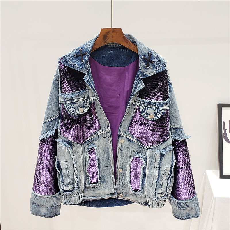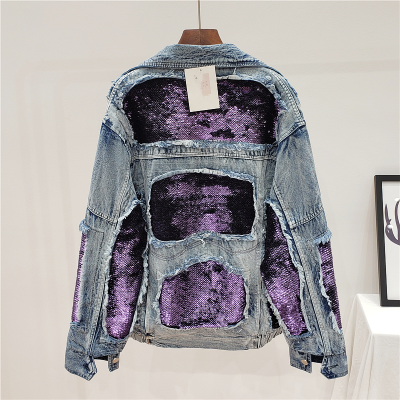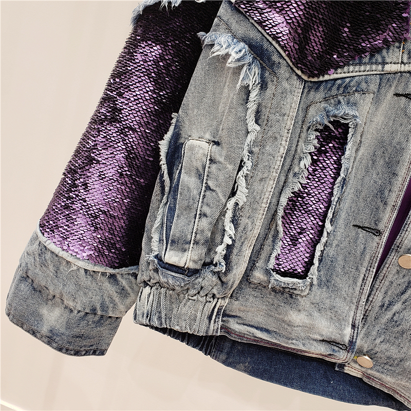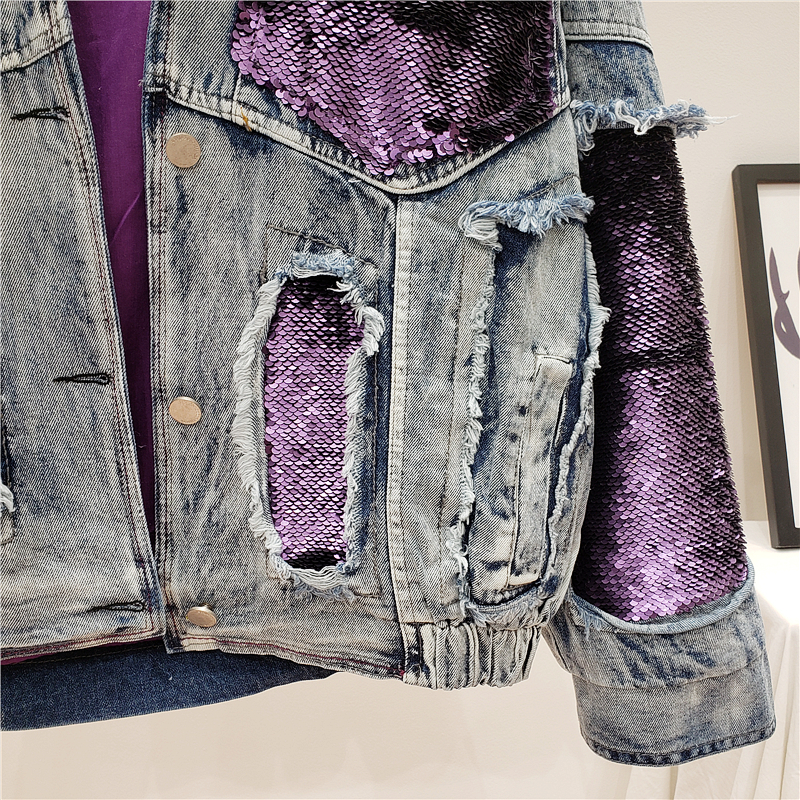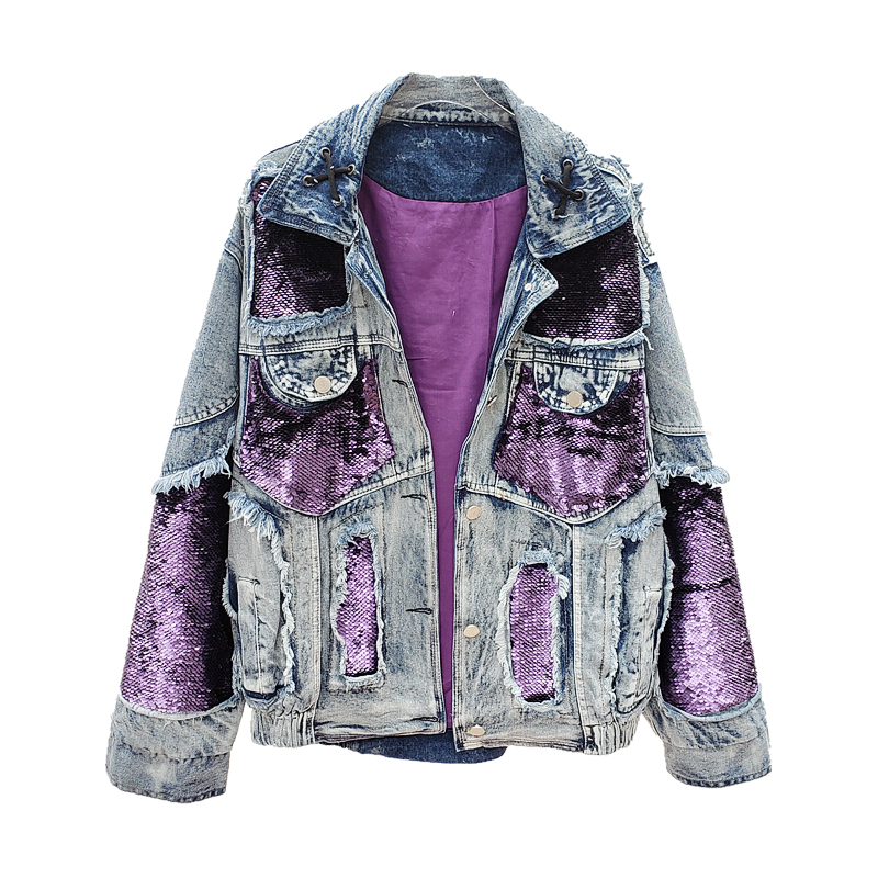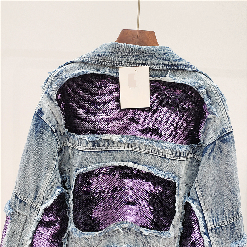 GIANA ZCHMUNKE HANDMADE RIPPED DENIM JEAN JACKET WITH SEQUINS
