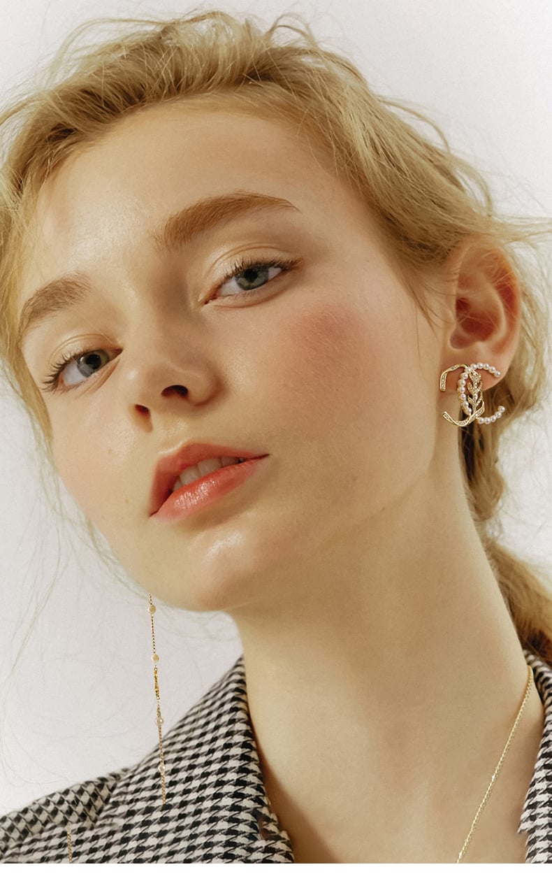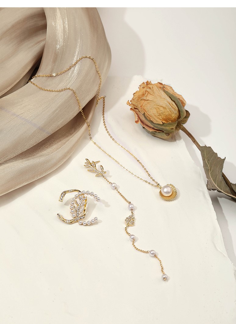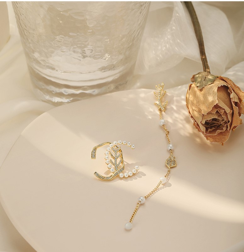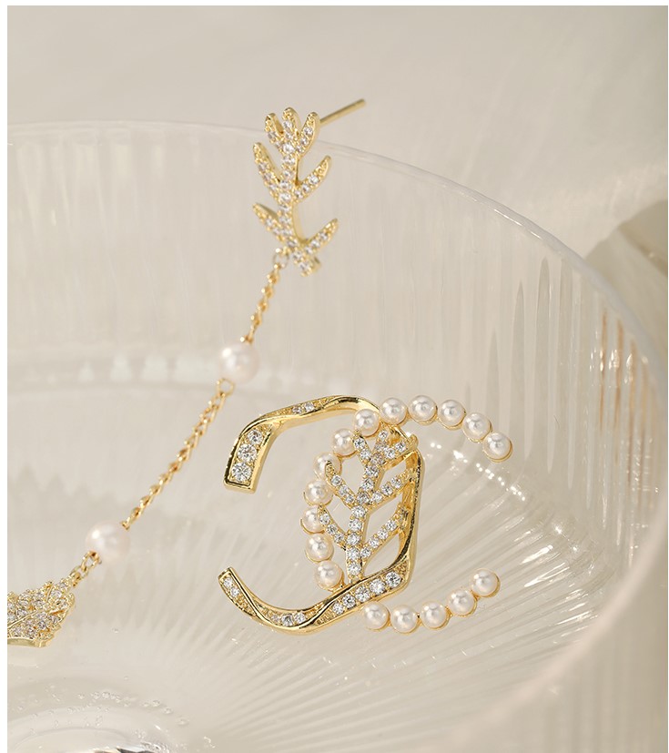 UZL DESIGN EARRINGS WITH DIAMOND STUD AND PEARL DROP CHARM IN GOLD PLATED