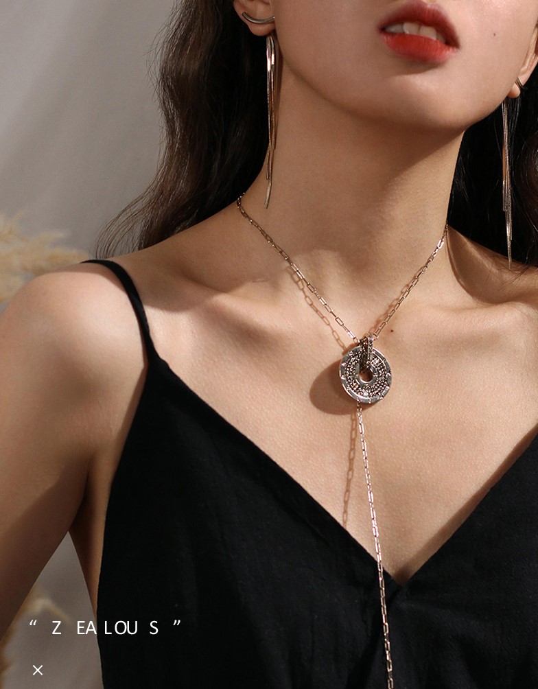 UZL DESIGN ADJUSTABLE CHAIN NECKLACE WITH VINTAGE INSPIRED COIN PENDANT IN GOLD PLATED