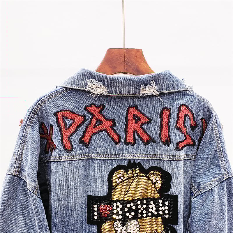MONICA MICHO HANDMADE BOHAH BEADED BEAR DENIM JEAN WOMEN JACKET WITH RHINESTONE