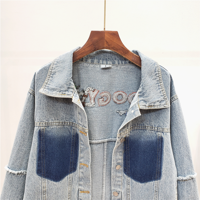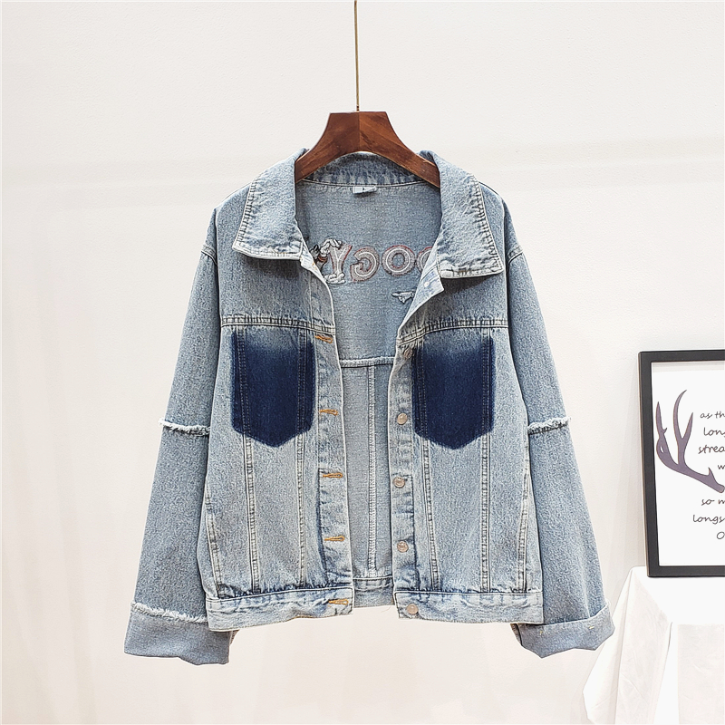JOYA PALF HANDMADE PLAID STITCHED FOOGY DENIM JEAN WOMEN JACKET