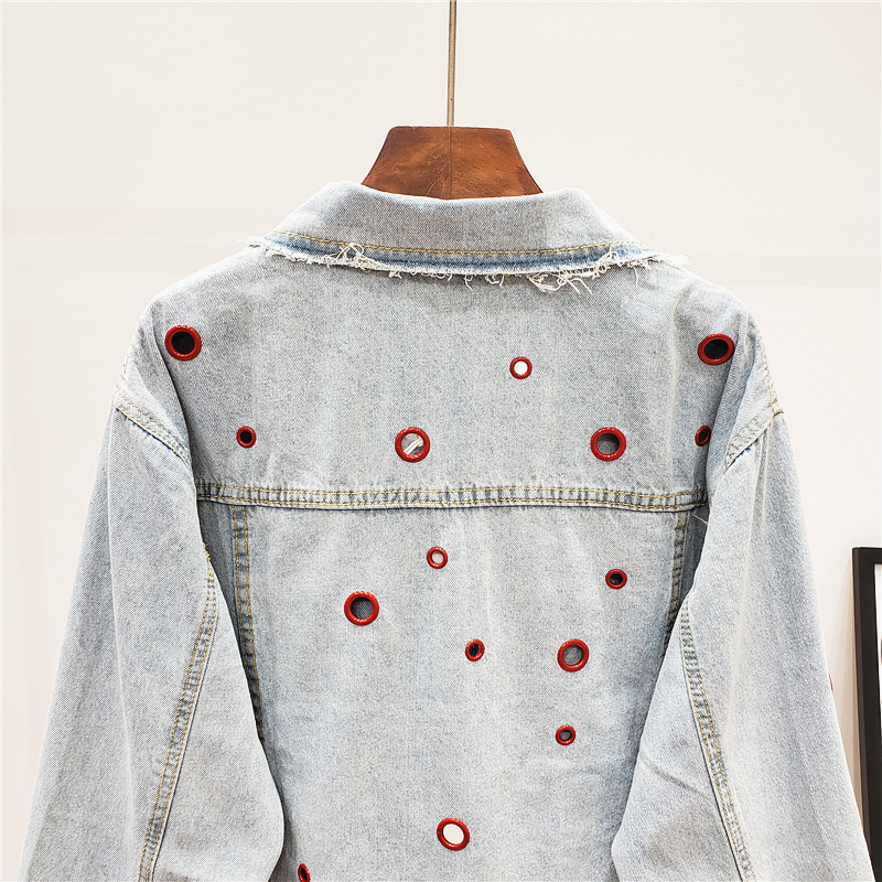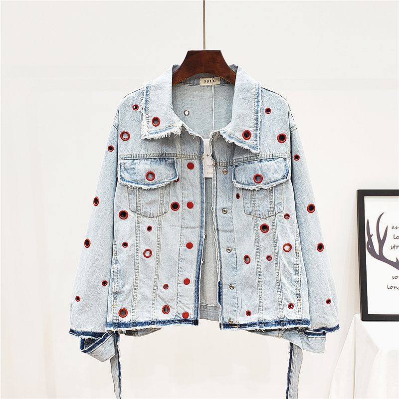 JEYYO CATHRO OLD FASHION DENIM JEAN WOMEN JACKET WITH RUFFLE RING HOLES