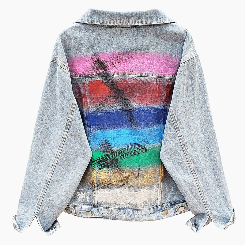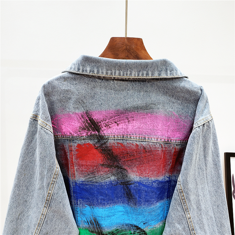 JEYYO CATHRO RETRO DESIGN GRAFFITI HAND PAINTED OLD STYLE DENIM JEAN WOMEN JACKET