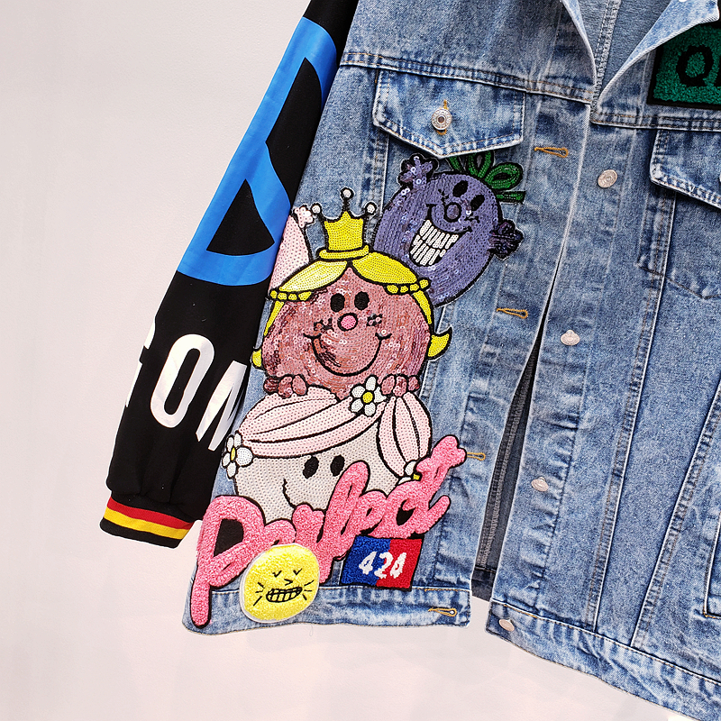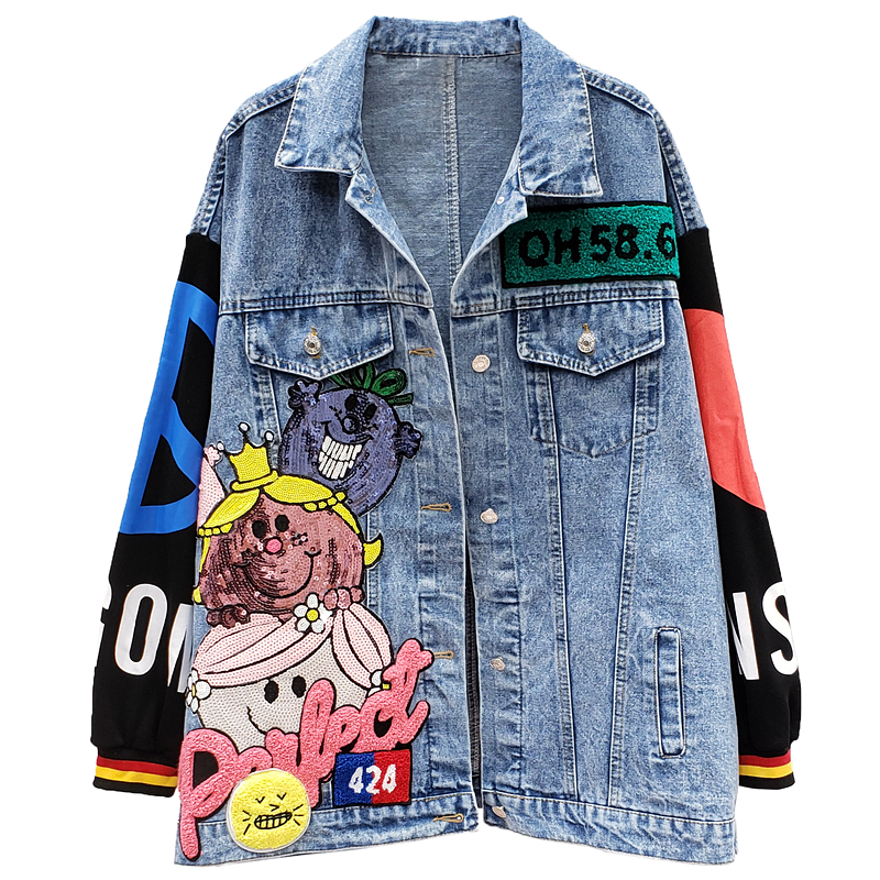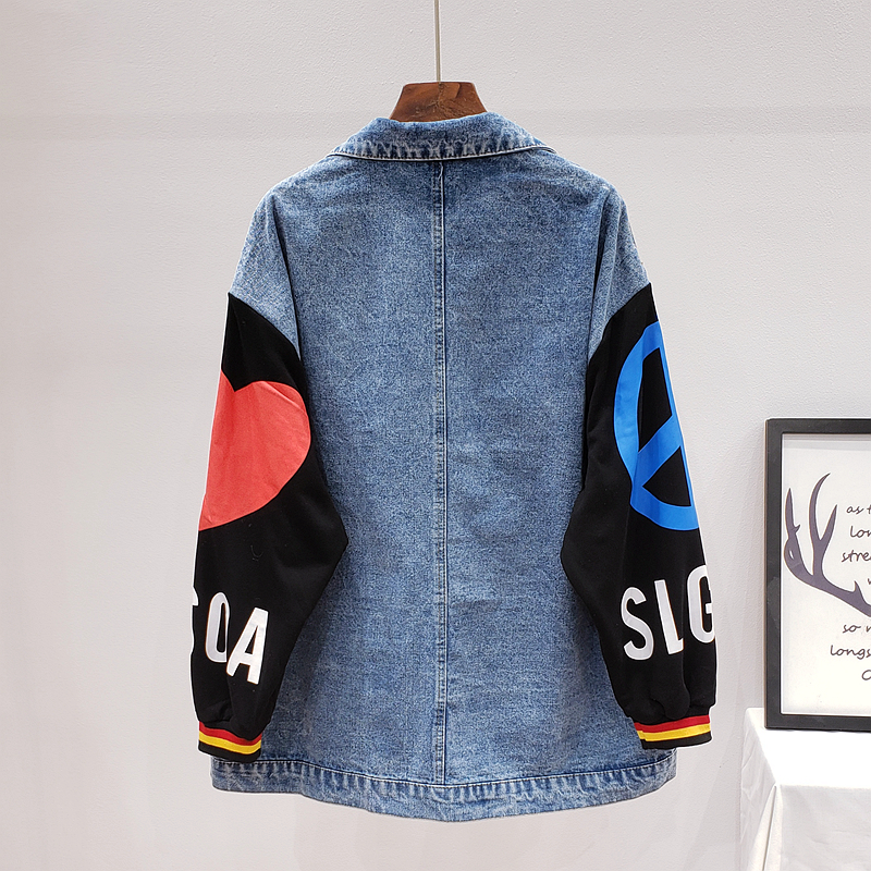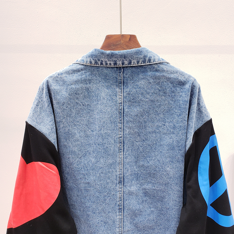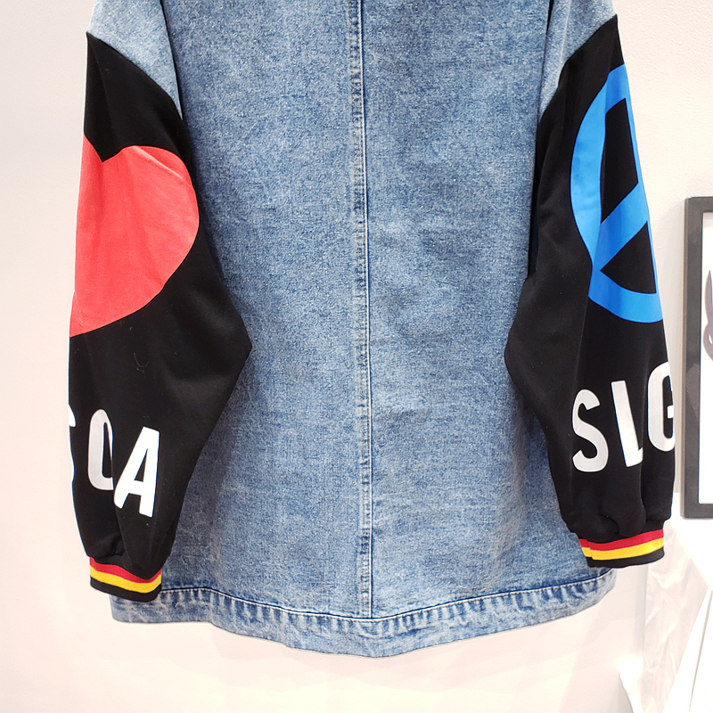 ZAUL FANTO BASIC COLLECTION CARTOON SMILEY FACE GRAFFITI DENIM JEAN COAT