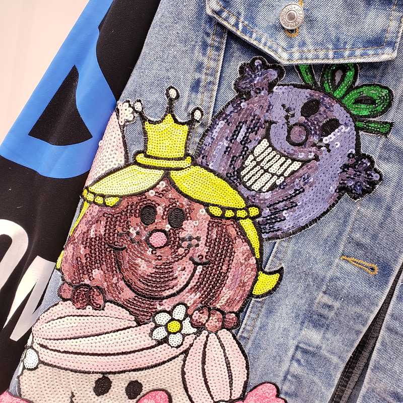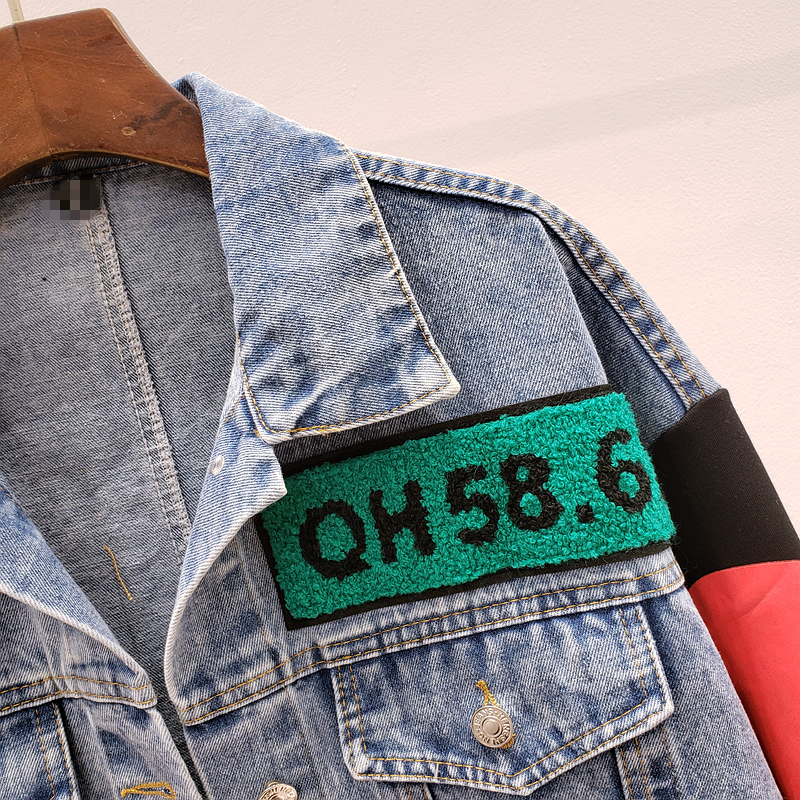 STREET FASHION PUNK COLORED ACRYLIC DIAMOND DENIM JACKET