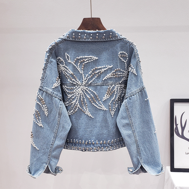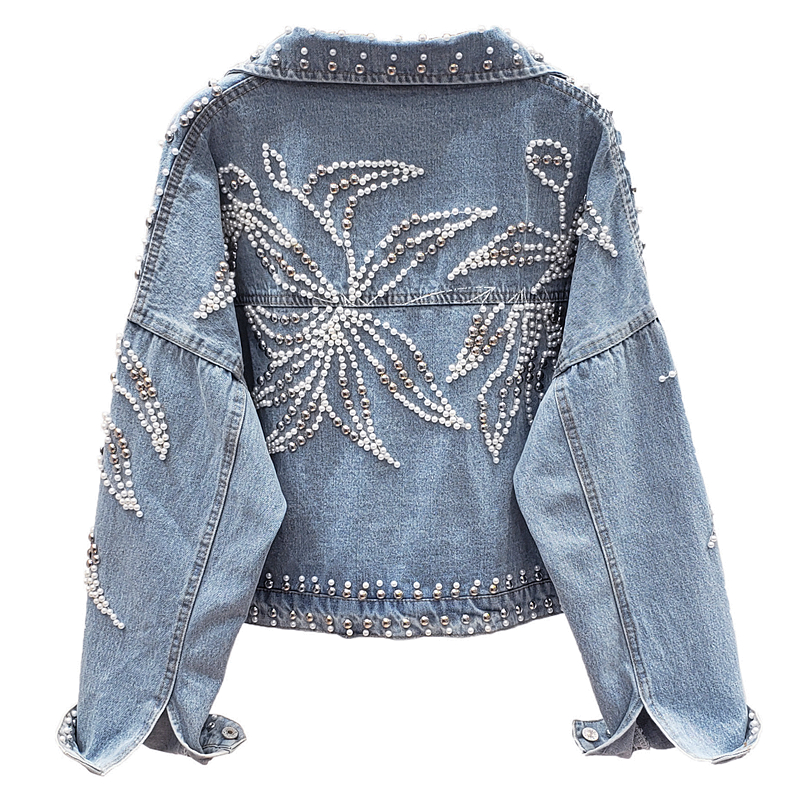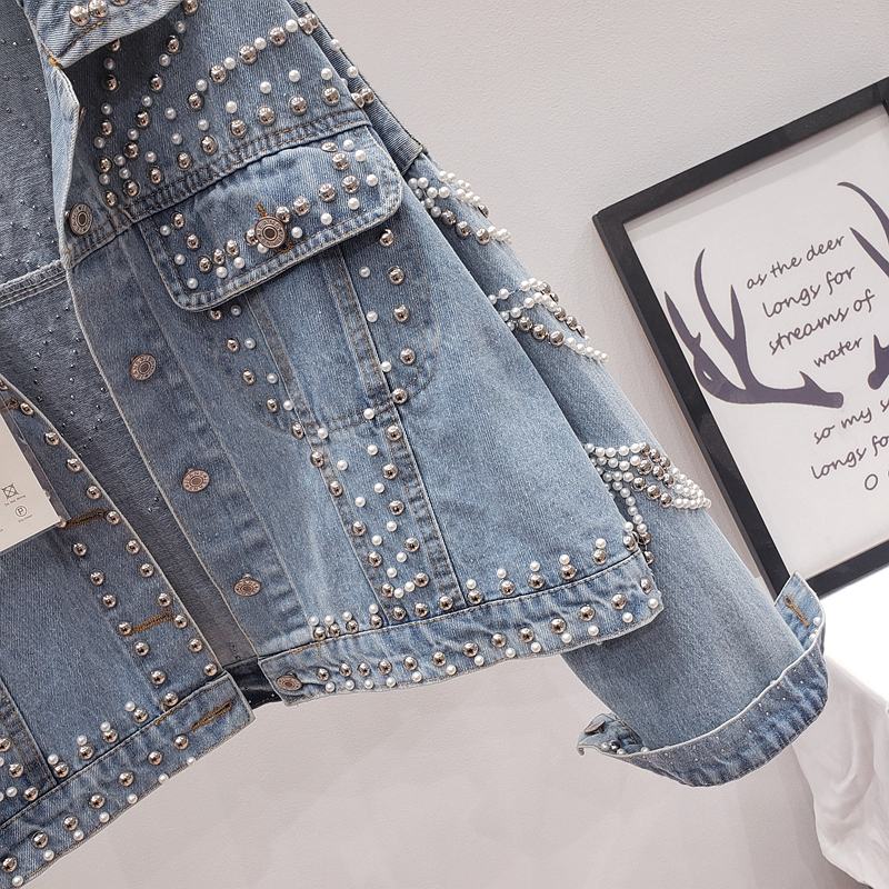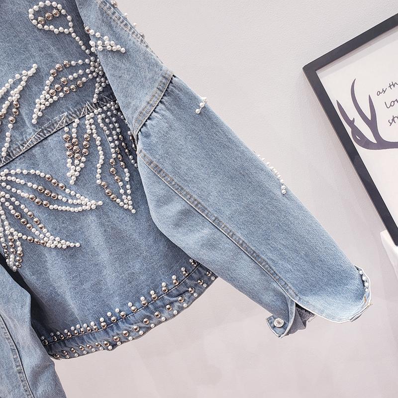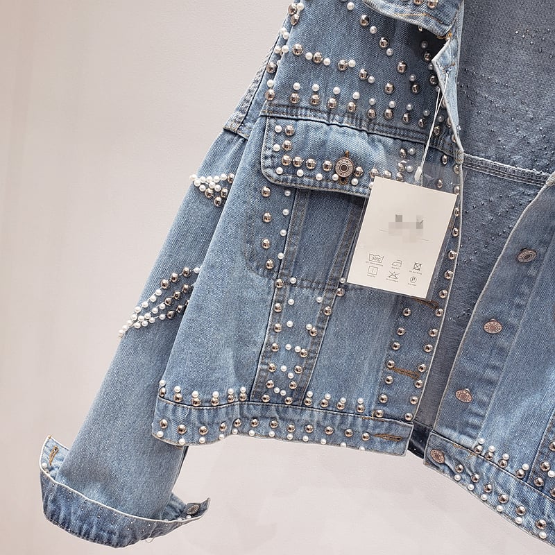 FUZZI KUNNO BASIC COLLECTION BEADED OLD FASHION STYLE DENIM JACKET WITH RIVET