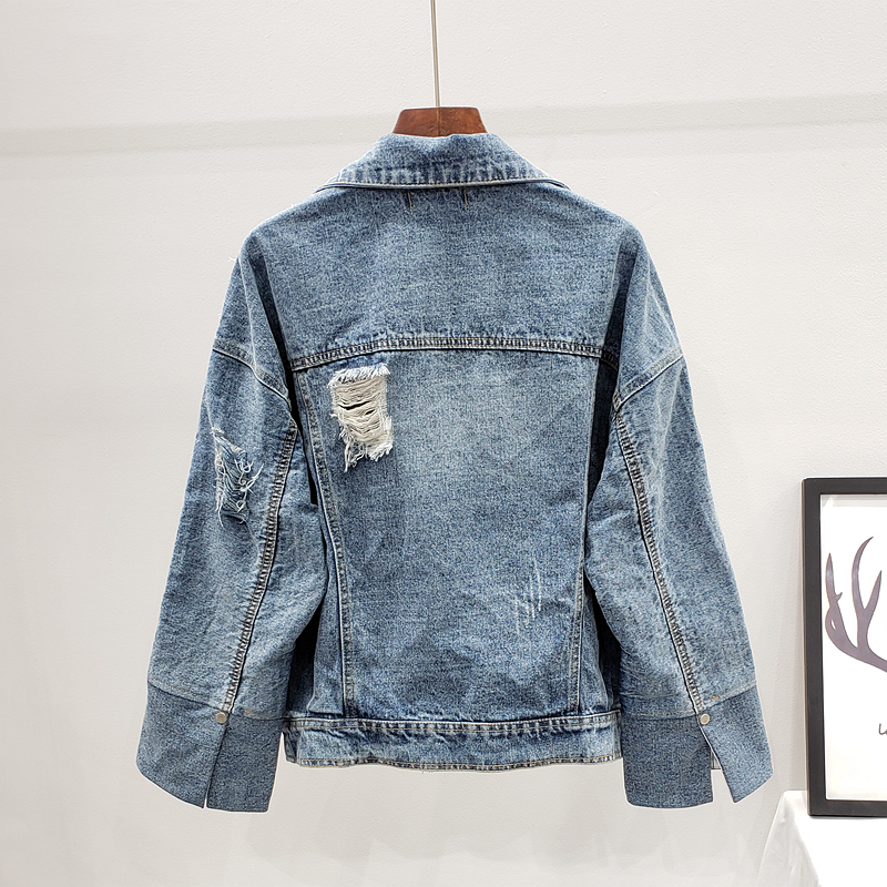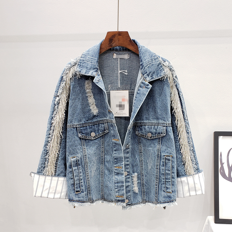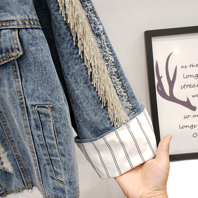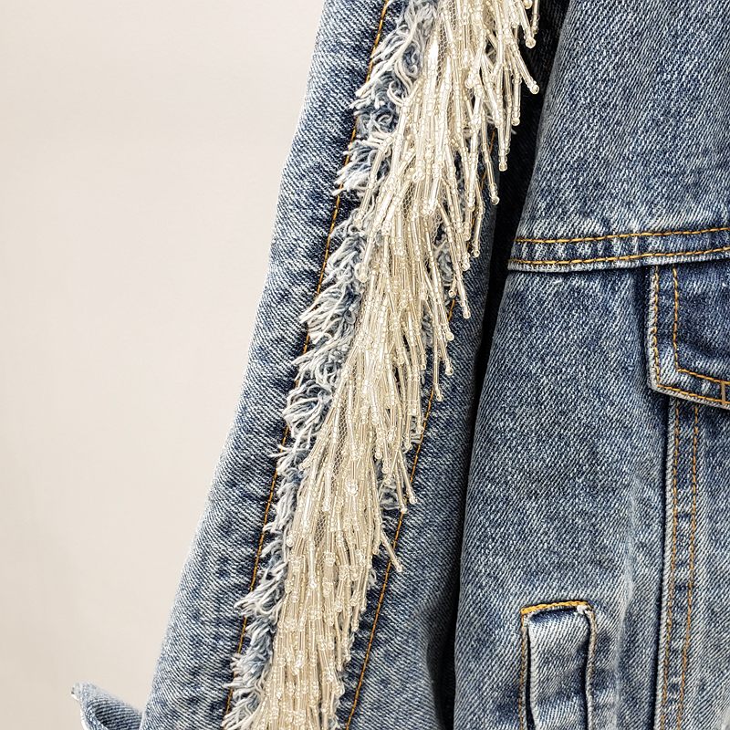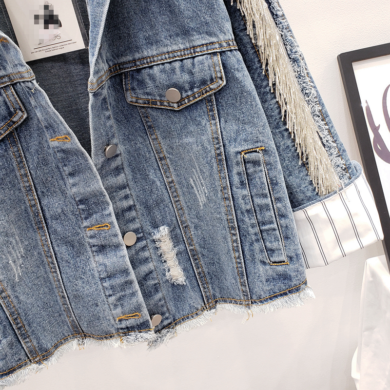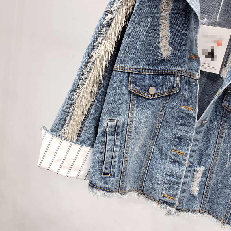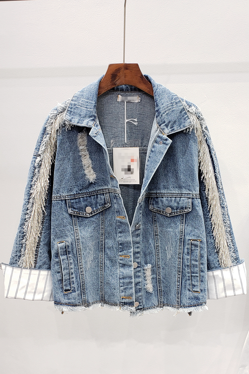 FUZZI KUNNO BASIC COLLECTION RIPPED DENIM JEAN COAT WITH TASSEL