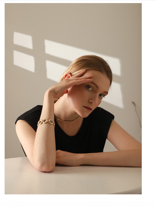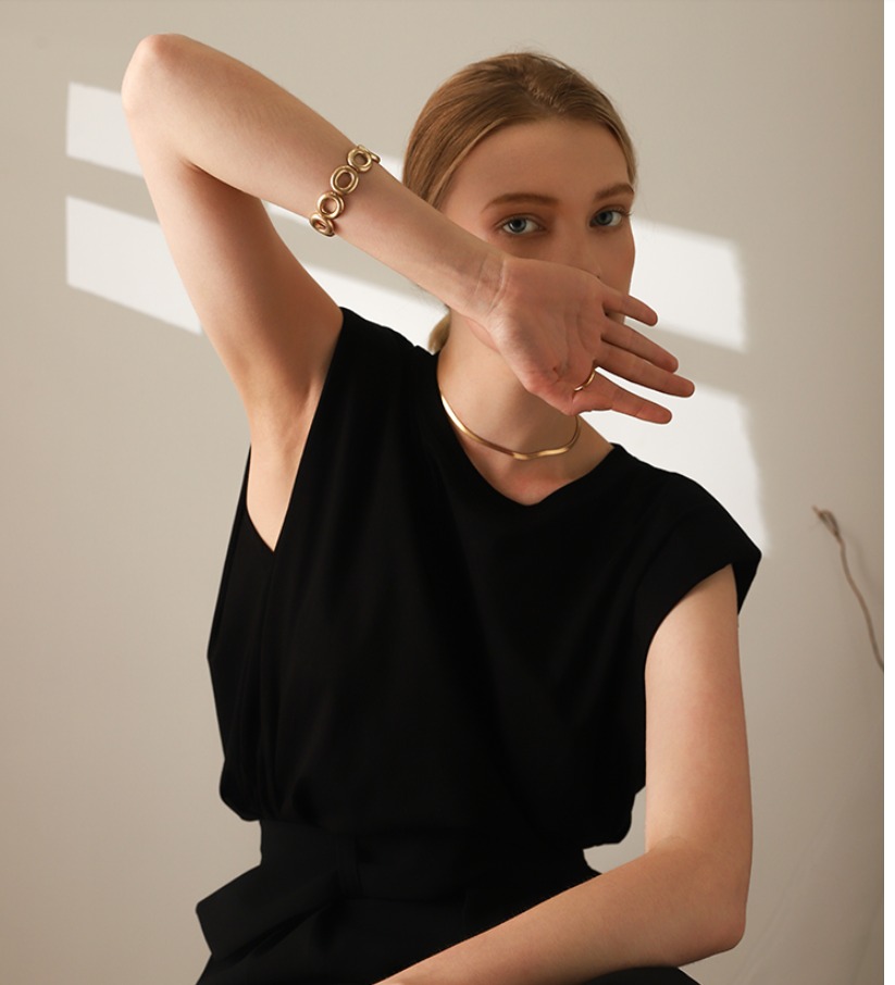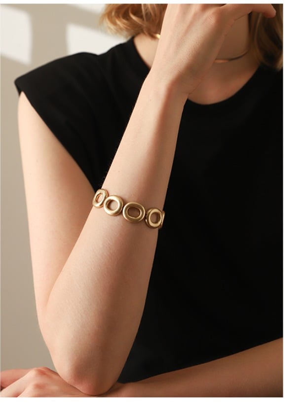 UZL DESIGN GOLD PLATED CUFF BRACELET WITH CIRCLE LINKS