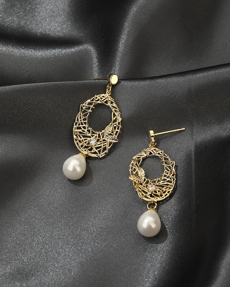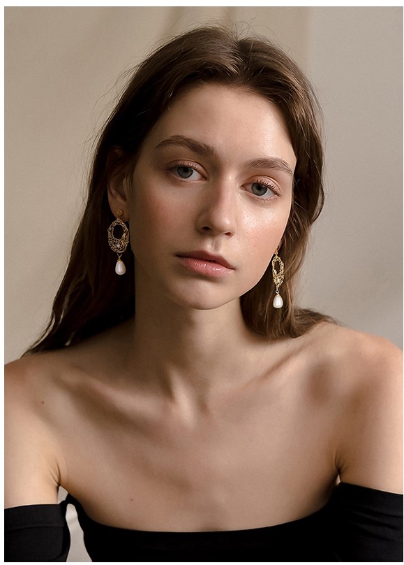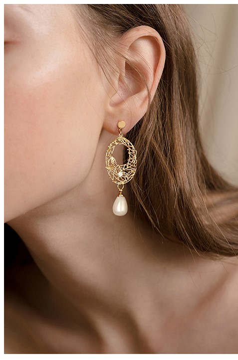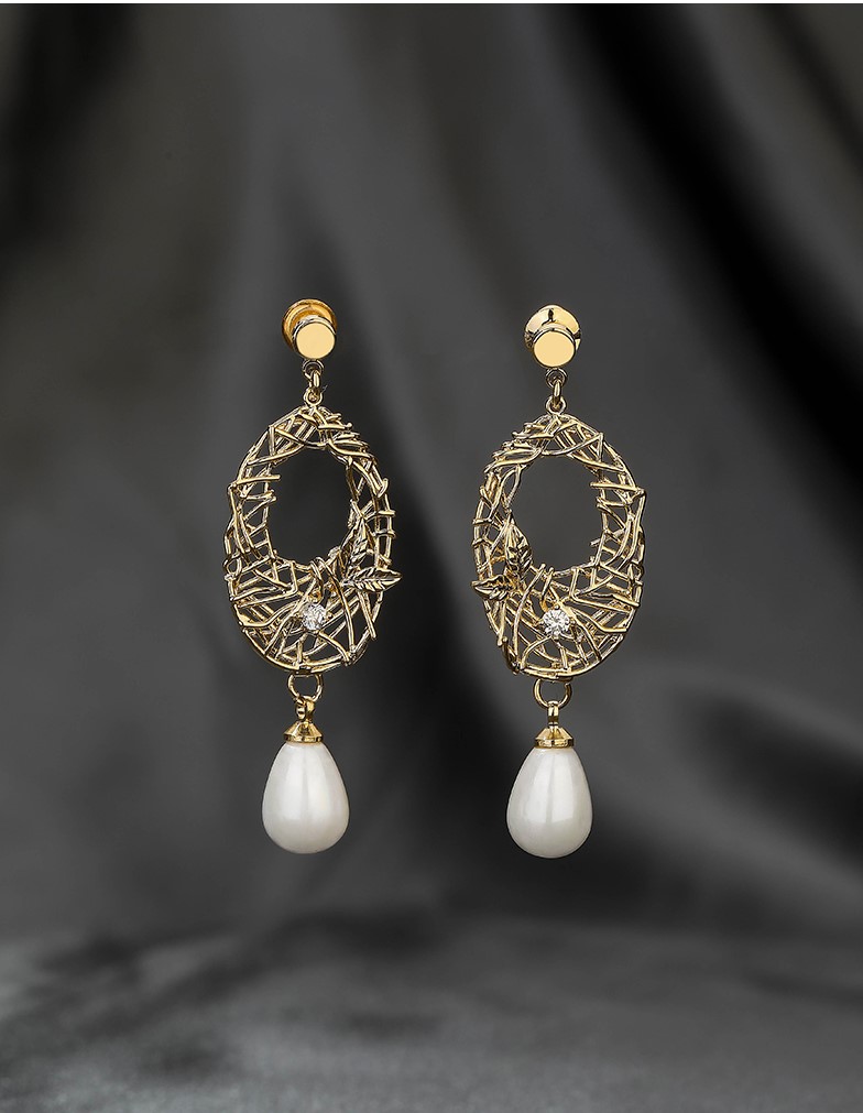 UZL DESIGN GOLD PLATED VINTAGE INSPIRED PEARL DROP EARRINGS