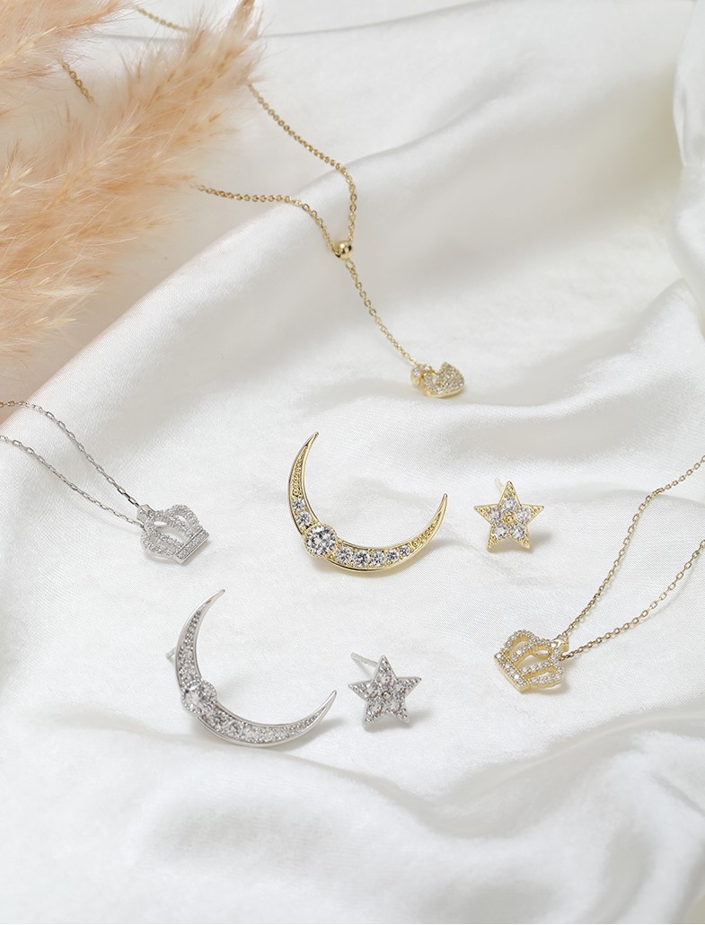UZL DESIGN CRYSTAL MOON AND STAR STUD EARRINGS