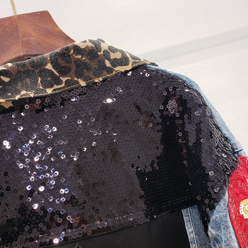 VANESSA JUSSO QUEEN GAME CHANGER LEOPARD DETAIL DENIM JEAN WOMEN JACKET