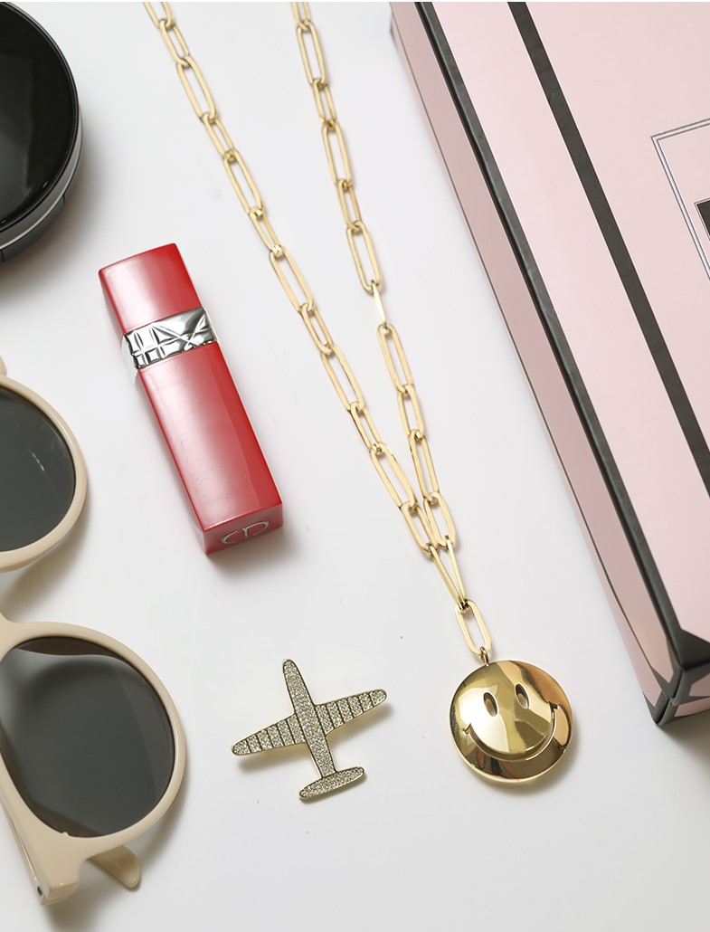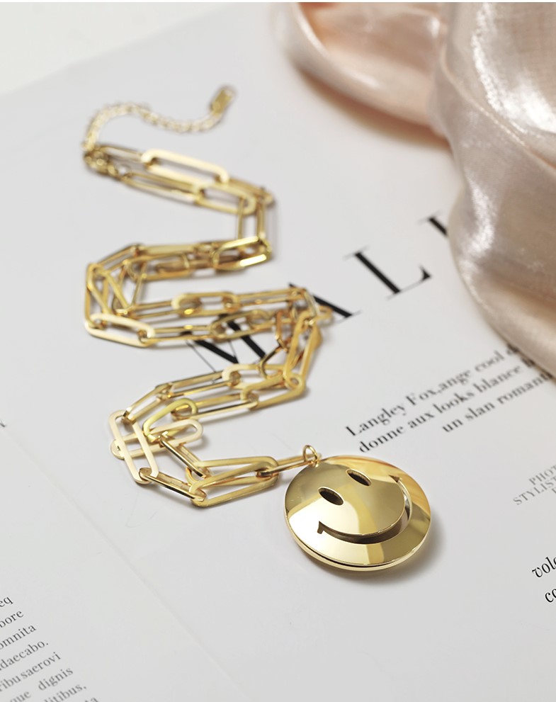 UZL DESIGN GOLD PLATED CIRCLE SMILEY FACE PENDANT NECKLACE