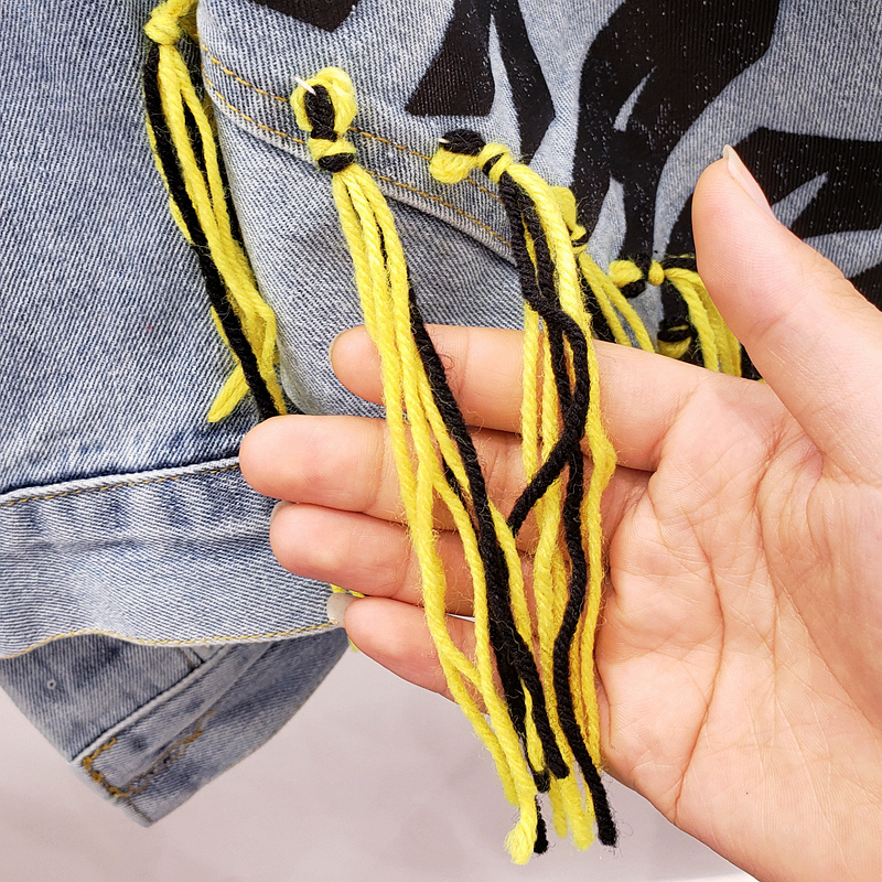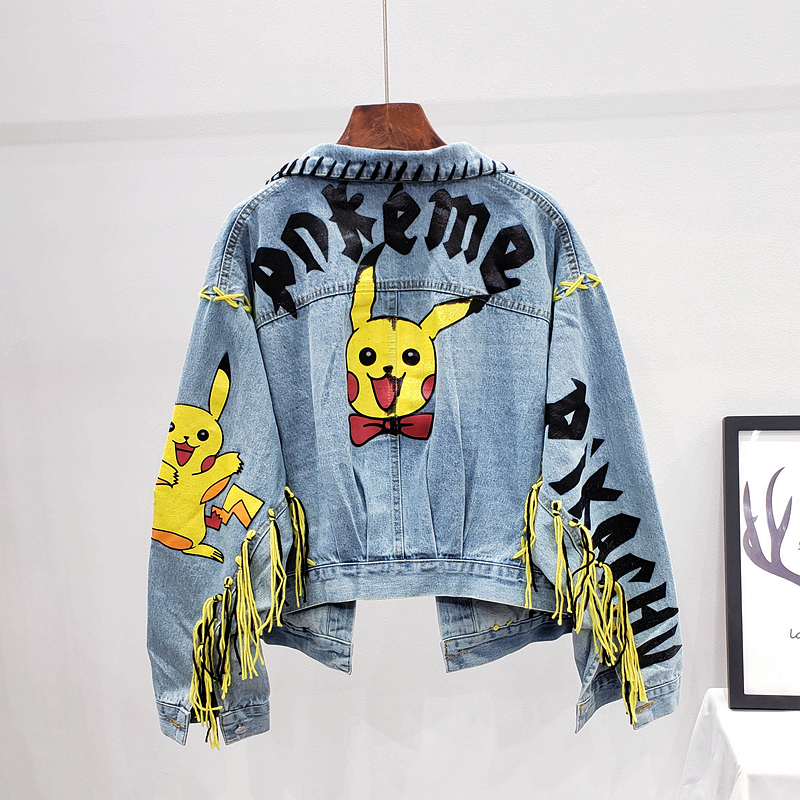 VANESSA JUSSO POKEME THREE DIMENSIONAL DENIM JEAN WOMEN JACKET WITH TASSEL